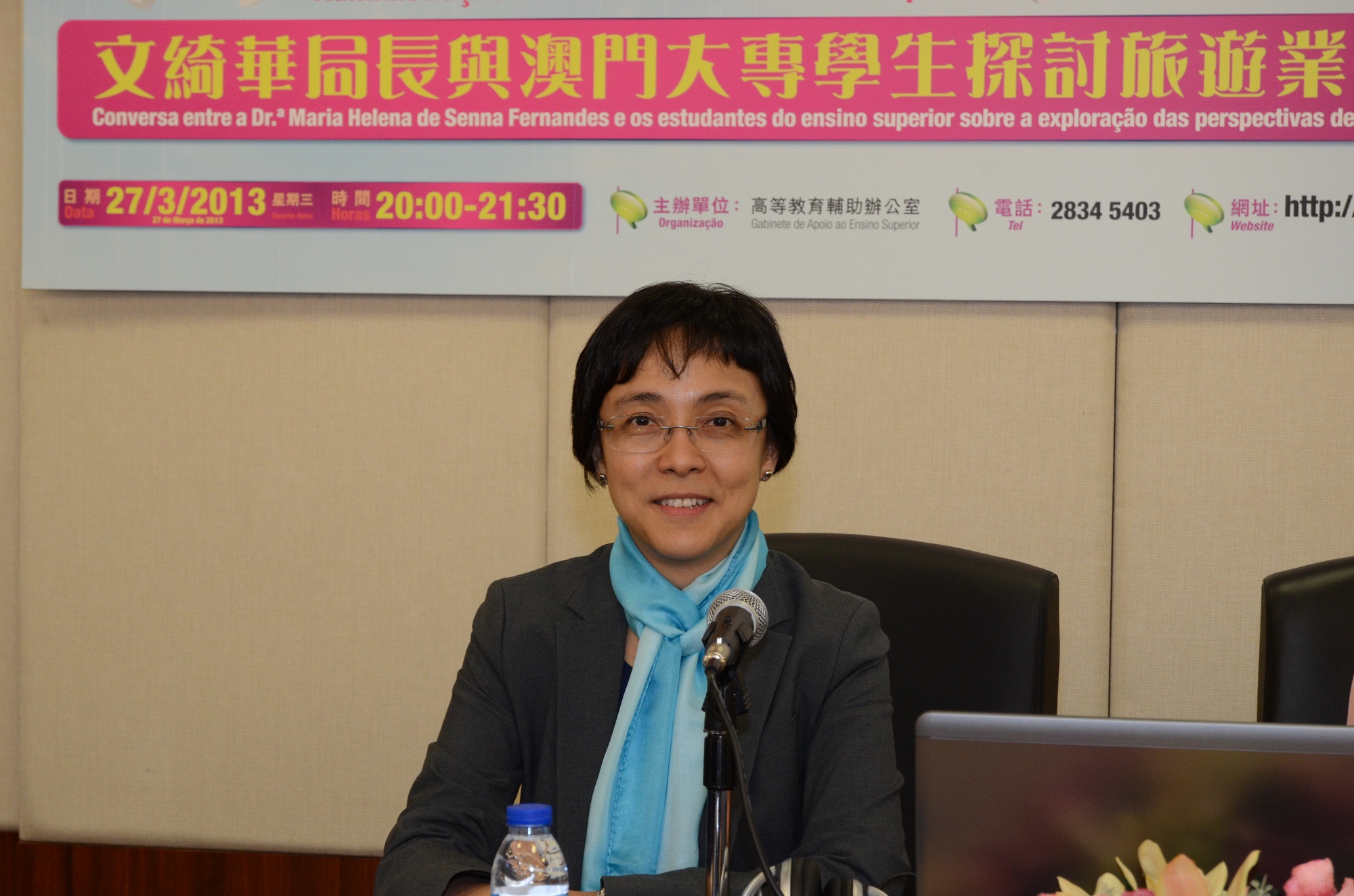是次網上對話主題為“文綺華局長與大專學生探討旅遊業的發展前景”,吸引了於本澳、內地、台灣、澳洲等地修讀旅遊專業的學生透過澳門大專學生部落聊天室,即時與文局長互動對話。不少學生把握機會,踴躍提問,關注的問題包括旅遊業的人才需求、就業前景、專業實習、澳門旅遊業未來規劃和發展藍圖等。在歷時一個半小時內,文局長耐心解答學生的提問,讓學生更清晰了解澳門旅遊業的現況以及未來發展前景。