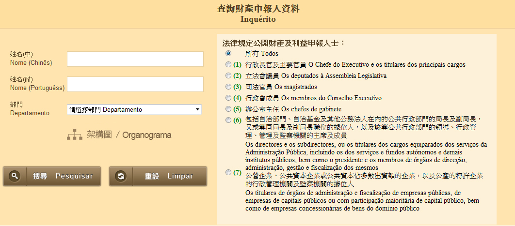 1. 在申報人士姓名方塊中輸入全部或部分中/葡姓名;