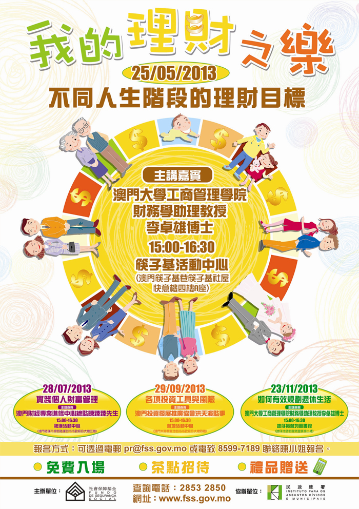 社會保障基金主辦“我的理財之樂”系列講座,第二場將由澳門大學工商管理學院財務學助理教授李卓雄博士講解制定個人理財計劃的步驟和方法。講座詳情如下: