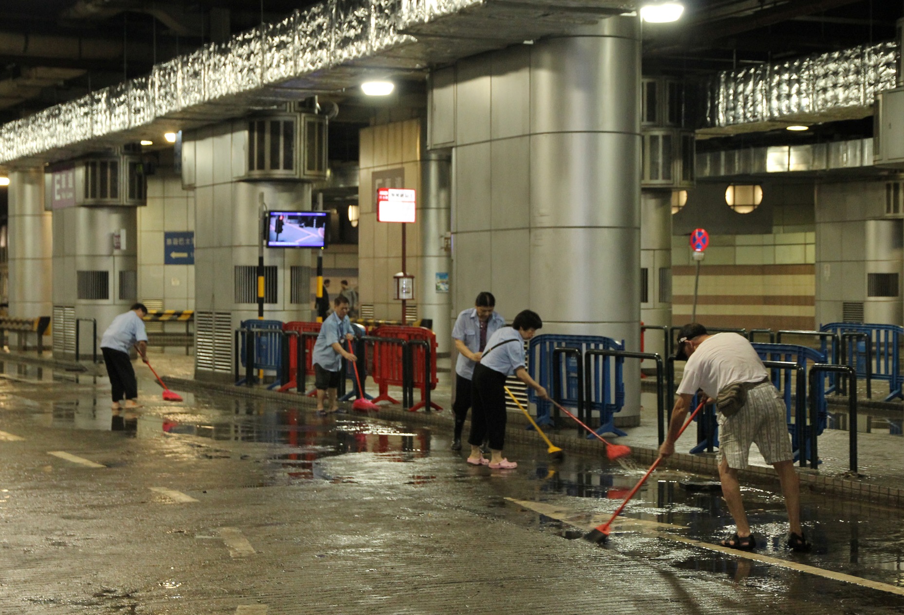 關閘地下巴士總站於今日(22日)凌晨暴雨期間出現較為嚴重水浸,須即時封閉並進行全面的抽水工作。鑑於巴士無法進入,為免影響市民大眾正常出行,交通事務局自今日(22日)首班車起,已即時在該總站附近設置臨時站,供乘客候車,惟候車人流過多;局方隨即再作調整,把由該總站發出的巴士路線,分別是:1、3、5、9、9A、10、10X、16、25、25F、25X、28C,改於“看台街/騎士馬路”站發車,而3A、10B、18、30、34及AP1則改於“看台街”站發車;另外,17及27路線亦臨時取消停靠關閘總站,並安排管理公司及巴士公司人員駐守相關出入口和巴士站指導乘客臨時乘車。