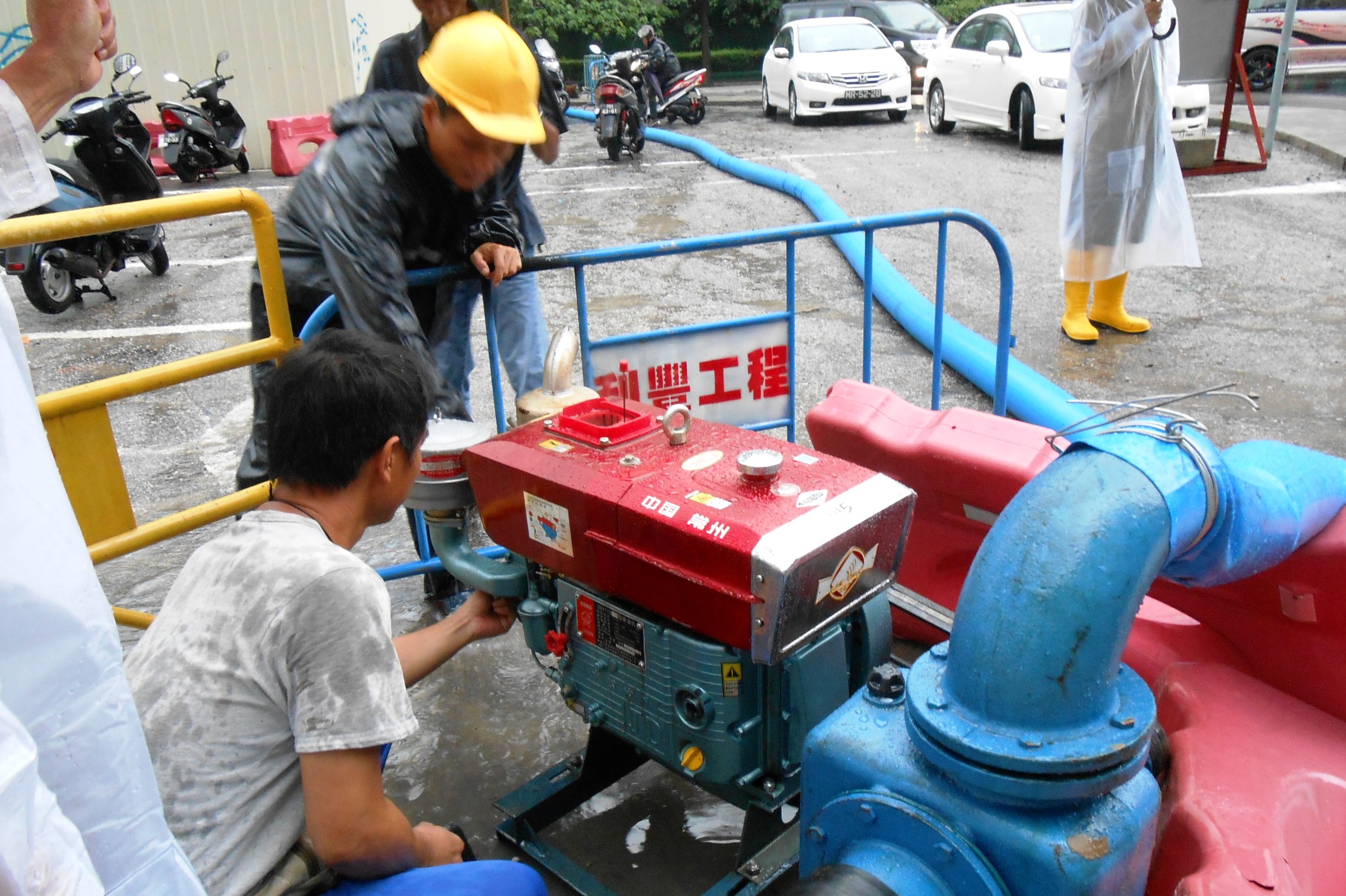 就今(25日)早出現的暴雨天氣,運輸基建辦公室即時啟動緊急應變機制,辦公室人員迅速前往工地了解及跟進暴雨期間的處理工作,並於出現水浸的位置啟動抽水設備協助排走積水。