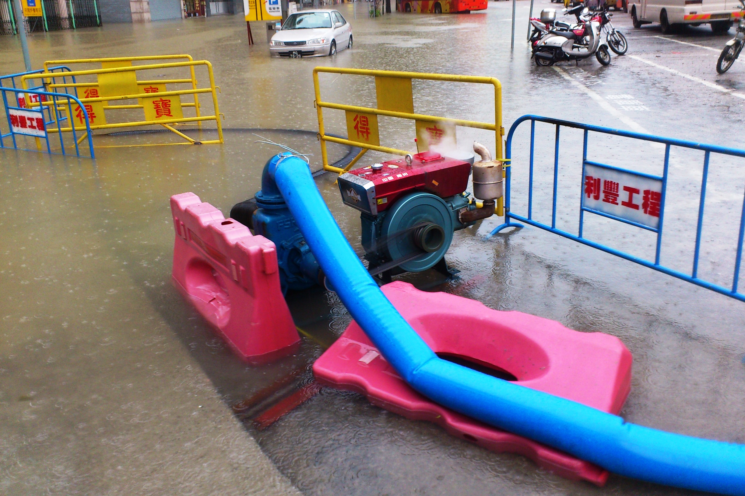 在接獲暴雨警報信號後,運建辦即時啟動應急機制,辦公室領導主管及工程技術人員即時前往柯維納馬路協調跟進清理積水的工作。設於柯維納馬路工地周邊的六台抽水泵也隨即開動協助排走積水,然而雨勢既急且大,柯維納馬路一帶低漥位置出現水浸。水浸情況由早上近9時開始,隨後大雨稍緩,至早上11時30分路面積水基本退卻。