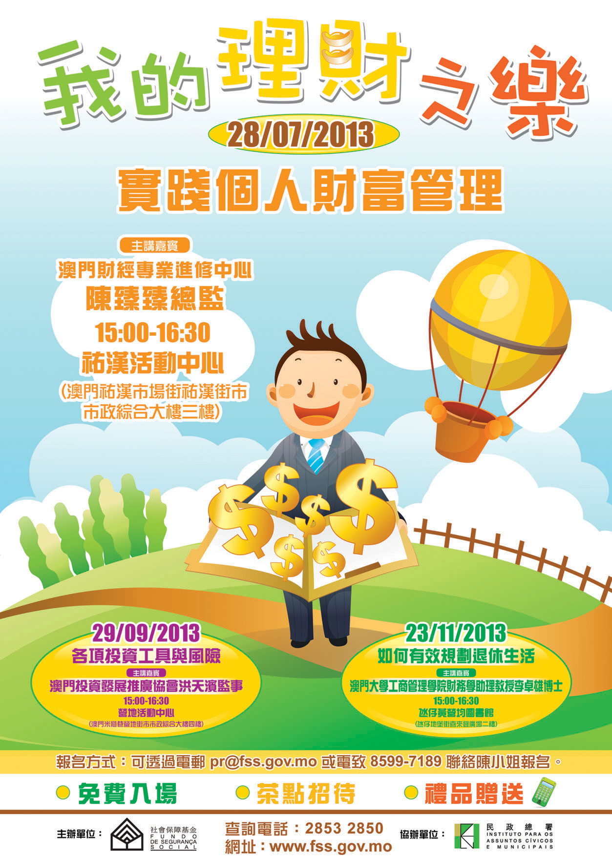 有興趣的人士可於辦公時間致電85997189報名,或郵寄姓名、出席人數和聯絡電話至pr@fss.gov.mo。活動名額有限,額滿即止,詳情可瀏覽社保基金網頁www.fss.gov.mo。