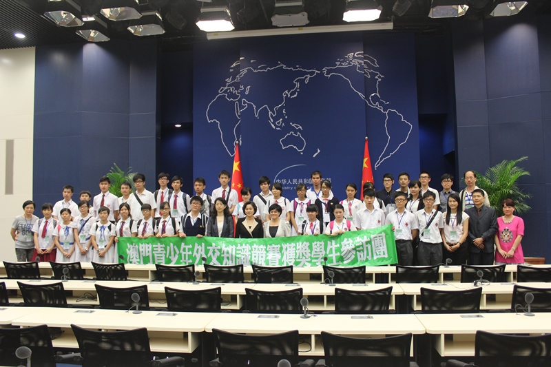 由澳門特別行政區政府及中華人民共和國外交部駐澳門特別行政區特派員公署主辦、教育暨青年局承辦、澳門工會聯合總會協辦的二O一二/二O一三學年“澳門青少年外交知識競賽”獲獎學生內地參訪活動於七月圓滿舉行。參訪團一行四十一人到訪了北京市和山西省的多個國家主要機構和國家級的歷史、教育和藝術景點。外交公署副特派員張金鳳和教青局局長梁勵於七月二十六日下午與參訪團師生在外交公署進行了分享會。
