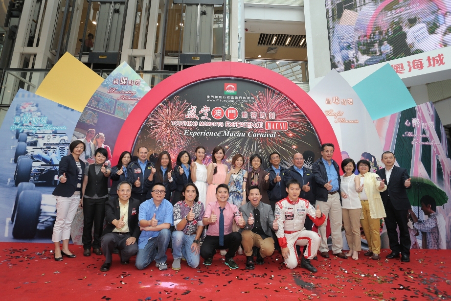 旅遊局局長文綺華、旅遊推廣廳廳長霍慧蘭和傳播及對外關係廳廳長容美華等聯同澳門格蘭披治大賽車委員會協調員安棟樑與一眾委員會成員出席今天(21日)假香港奧海城二期舉行的「感受澳門嘉年華」路展開幕儀式。