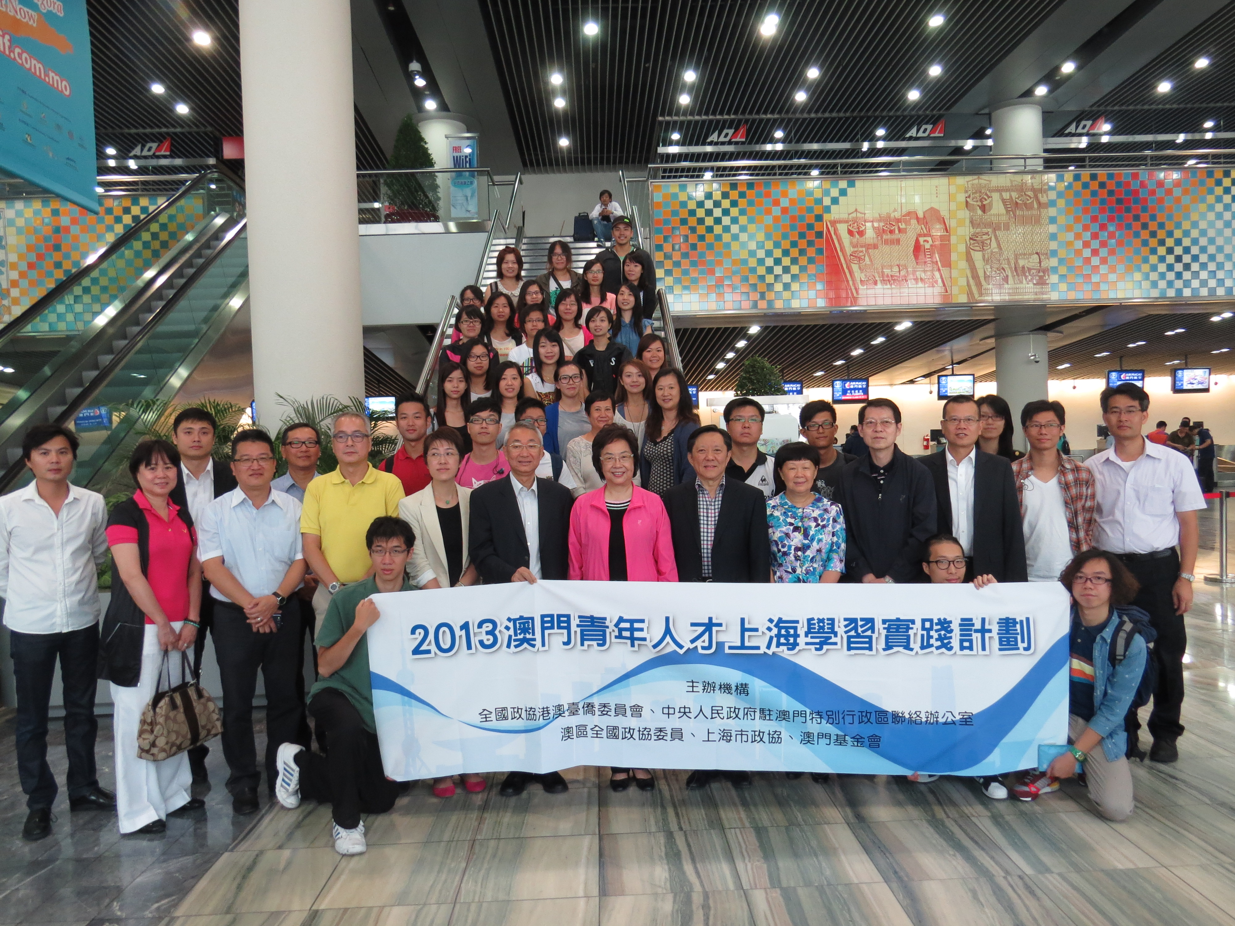 由全國政協港澳臺僑委員會、澳門中聯辦、澳區全國政協委員、上海市政協及澳門基金會聯合主辦的2013“澳門青年人才上海學習實踐計劃”一行9月22日在澳門基金會行政委員會副主席林金城、行政委員黎振強以及合作暨跟進處處長鄭妙思的帶領下,於澳門國際機場啓程前往上海,出席9月23日在上海行政學院舉行的開班儀式。接下來,29名青年學員在滬正式開展為期三個月的學習實踐。出發前,林金城及黎振強再次表達了對學員的殷切期望,勉勵學員們珍惜此次難得的學習和實踐機會,不負眾望,學成歸來,為澳門的發展添磚加瓦。