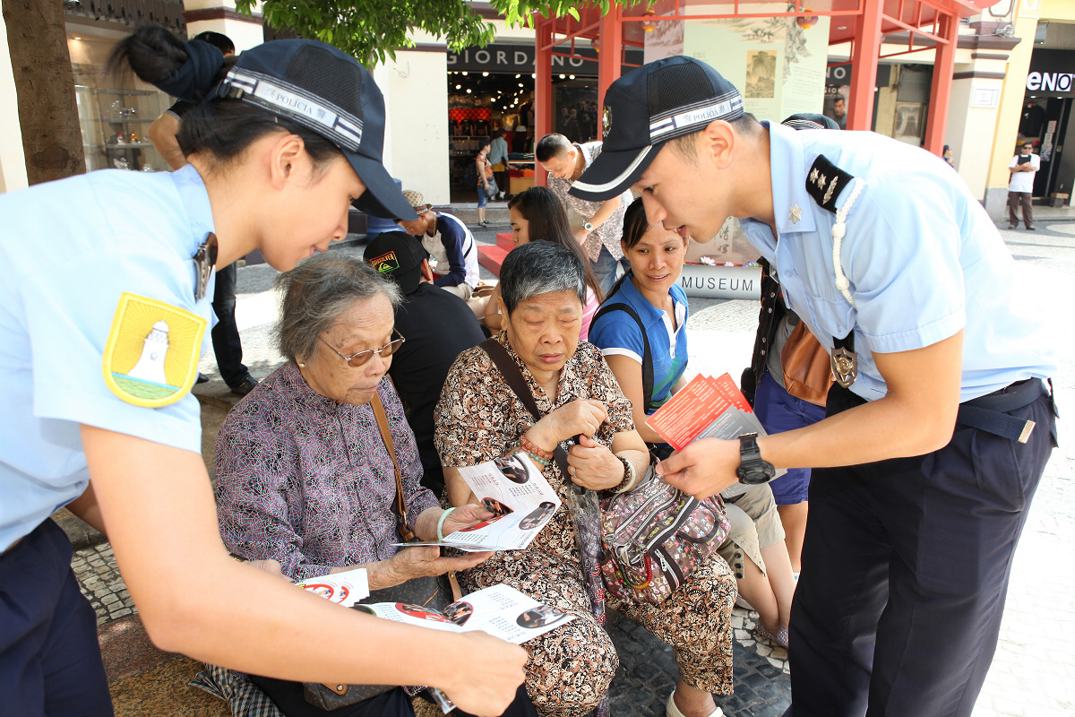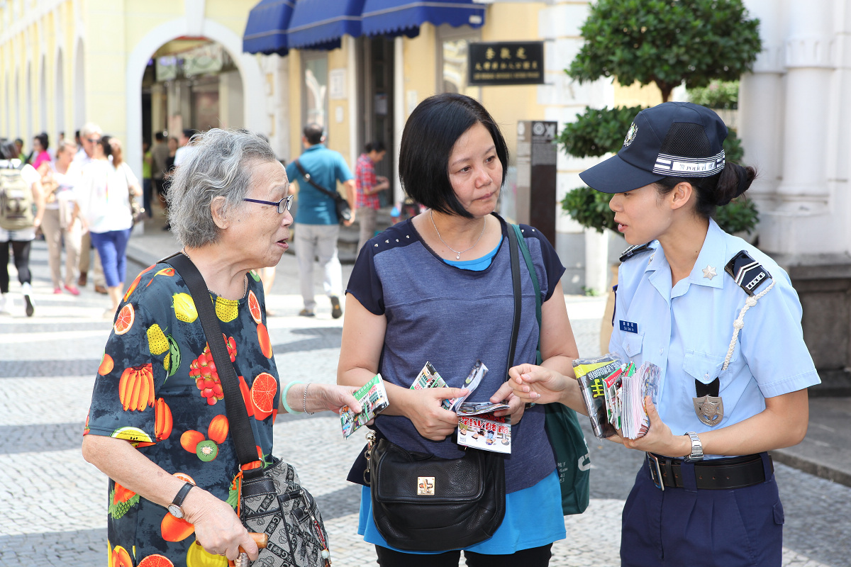 國慶節黃金週假期將至,預計市面人流暢旺,本局今日到新馬路旅遊區一帶進行宣傳活動,向居民、遊客及商戶傳遞防盜訊息,提升防罪意識,歡度國慶假期。