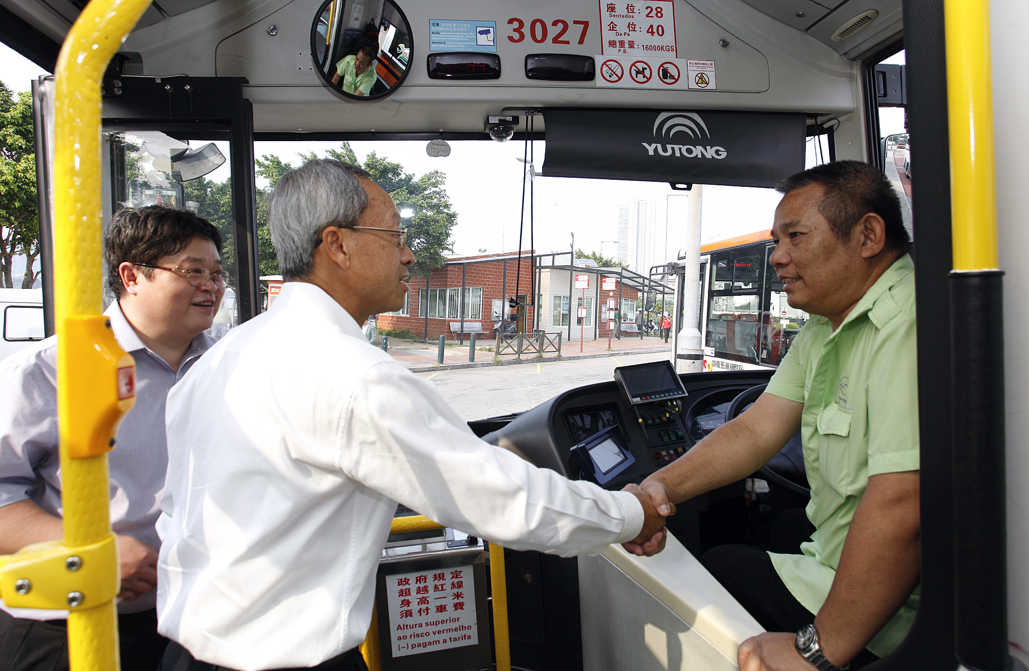 運輸工務司司長劉仕堯今天(3日)先後巡視媽閣巴士站及維澳蓮公司總辦公室,與巴士司機及員工交談,了解政府接管維澳蓮運巴士服務後的運作情況。劉仕堯表示,在各位員工堅守崗位下,政府接管維澳蓮運公司巴士服後首日基本暢順,接管工作亦有序展開;並重申政府重視維澳蓮運員工的職業保障,保持原有的待遇。