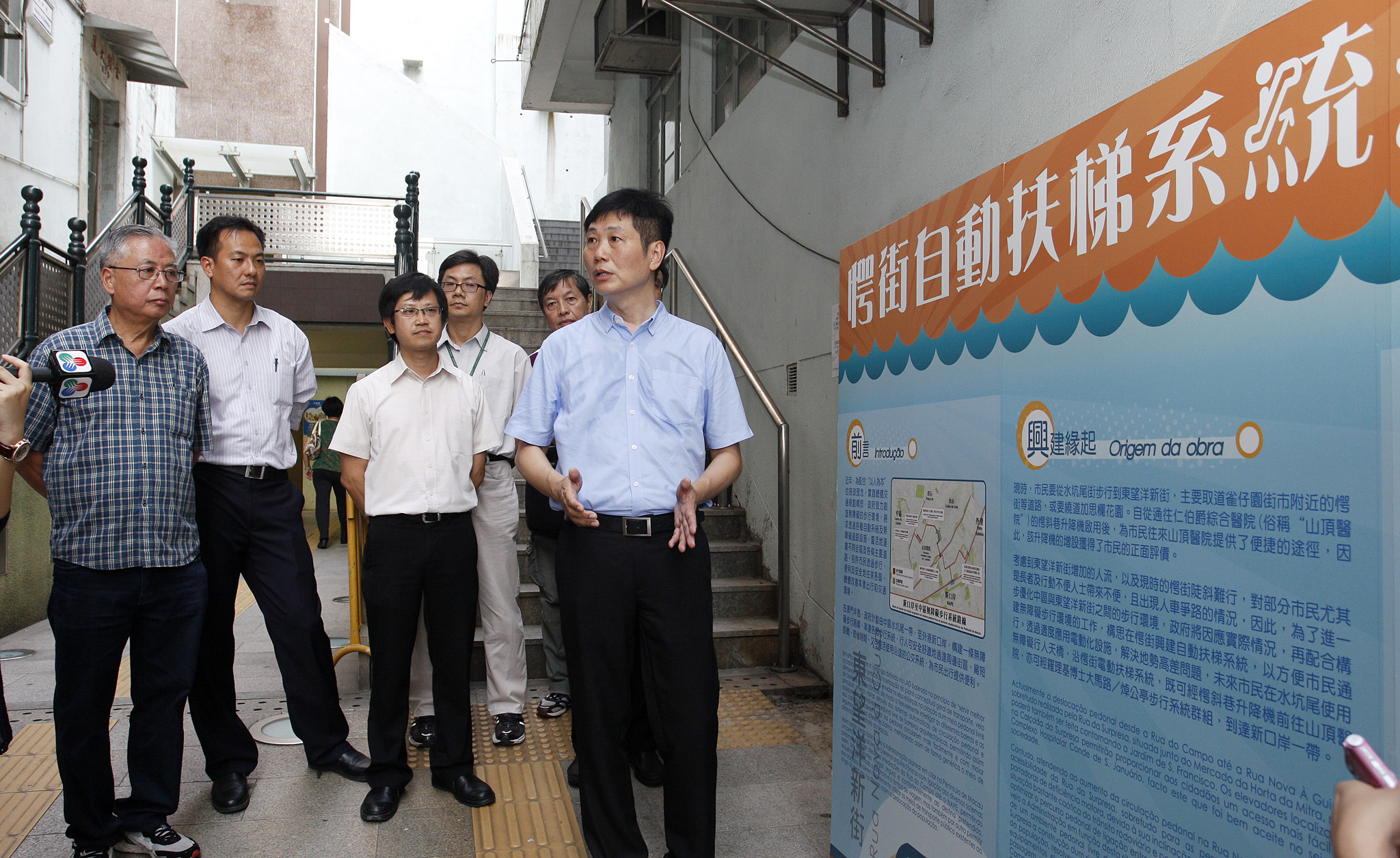 配合特區政府致力創造無障礙步行環境的規劃,並因應愕斜巷升降機啟用後帶動人流增多,經汲取居民及商戶意見後,政府將於較為陡斜難行的愕街設置單向上行的自動扶梯系統,方便市民通行。工程目前處於編制圖則階段,預計可於今年內完成,爭取盡快展開招標及動工,工期預計15個月。為向市民進一步介紹有關系統,土地工務運輸局及交通事務局今(10日)起於愕街上方,愕斜巷入口處設置展板,歡迎市民前往瀏覽。
