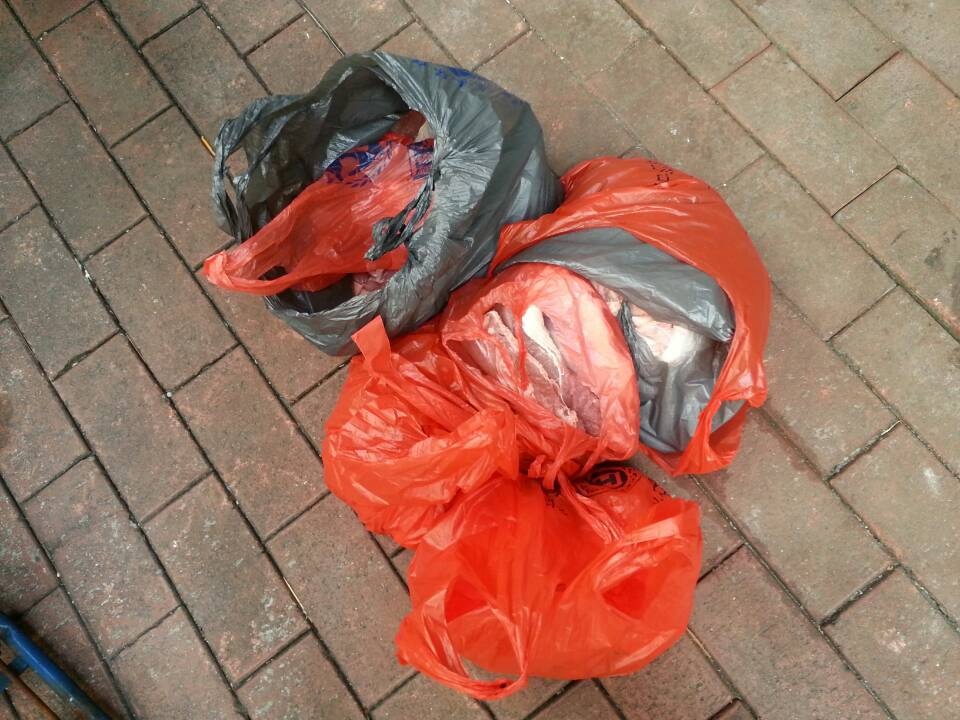 本月十日中午海關行動管理廳關員在關閘外圍對水客進行監視行動,於下午二時左右,海關關員發現陸陸續續有水客把攜帶回澳的物品放置於關閘華大新邨第三街附近三處不同地方,於是,關員在現場作出監視,約下午二時三十分至三時,分別有三名男子到達現場整理有關物品並準備離開時,海關關員採取截查行動,檢獲一批未經檢疫之已宰家禽及肉類物品。