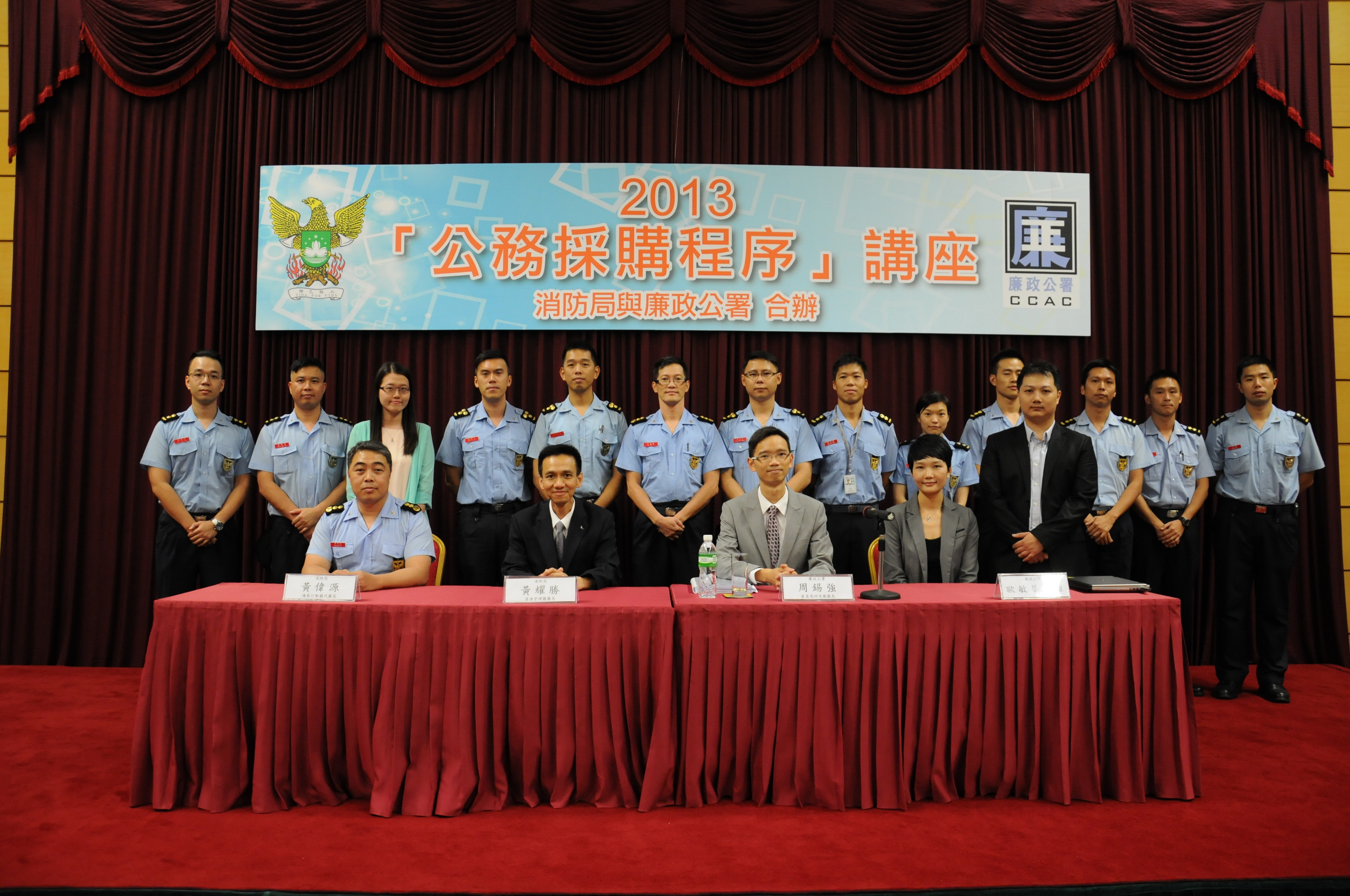 為加深對公務採購程序的了解,消防局於本年10月23日邀請廉政公署派出代表到消防局總部暨西灣湖行動站進行「公務採購程序」講座,目的是加強人員就採購工作及預防賄賂的廉潔意識。