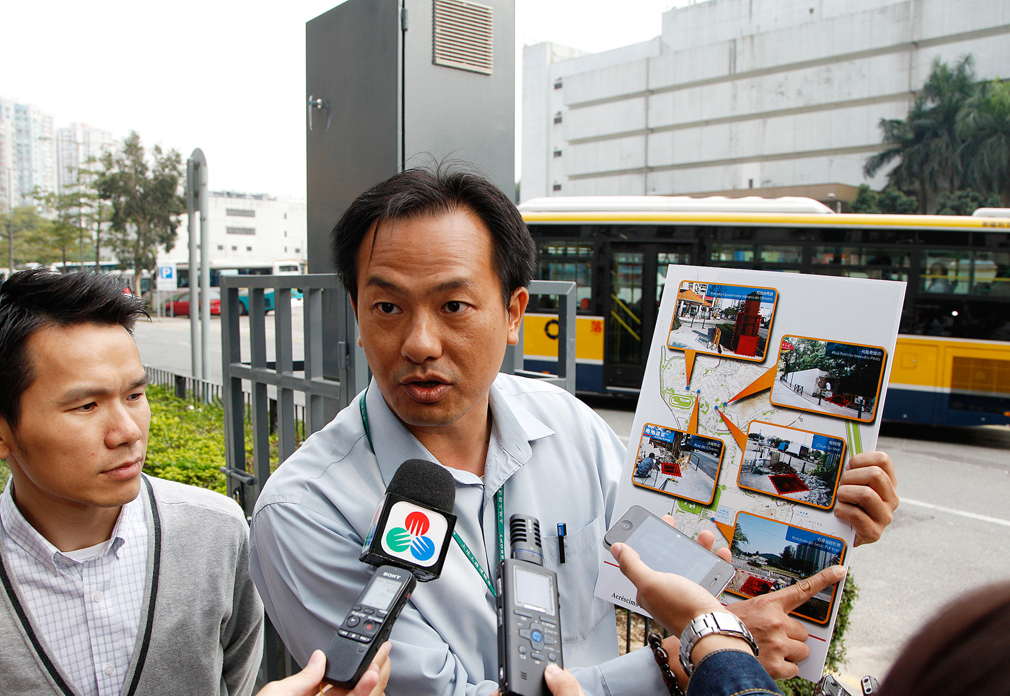 土地工務運輸局基礎建設廳廳長郭子昌、水力暨環境衛生處處長余穎麟、地球物理暨氣象局氣候暨大氣環境中心主任梁永權、運輸基建辦公室代表劉嘉龍 等今天(20日)下午向傳媒介紹新增水位監測站及氹仔下水道整治工程進度。
