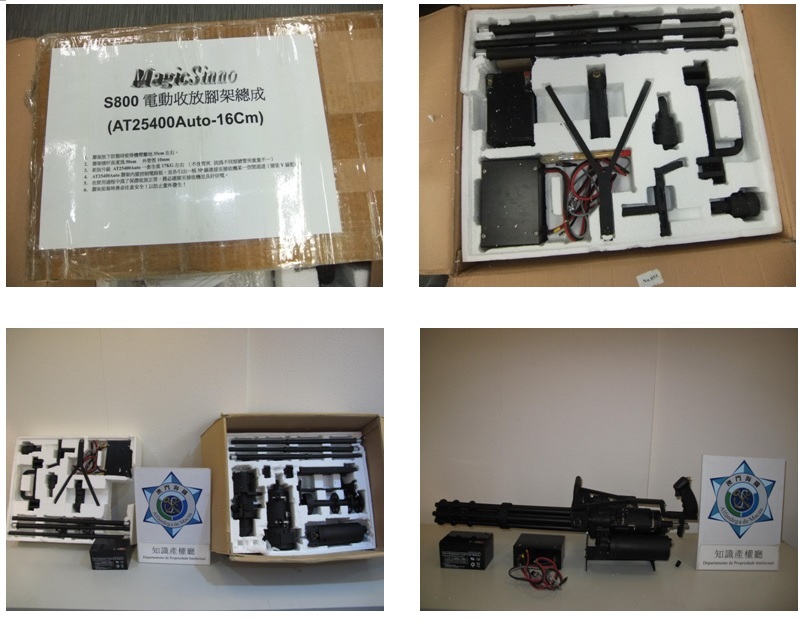 海關知識產權廳/技術及訴訟處在接收首宗案件後,就上述案件迅速展開跟蹤及調查,扣押六箱仿真槍槍械零件包括:長槍木槍托六十個,塑膠槍托兩個,扳機護環六十組,仿真左輪槍子彈輪連鎖橋及上彈器兩組,壓縮氣體一百四十四支。經過對上述貨物和運輸工具的佈控並篩選提供的風險指標,所作出的風險評估分析,懷疑有人利用海路運輸和特快專遞郵寄方式,化整為零偷運仿真槍械零件來澳。海關隨即透過聯合行動機制與治安警察局情報廳聯手偵查。組成一專案小組於十一月二十五日採取聯合行動,在北區某工業大廈倉庫內再發現另一批仿真槍械及配件包括:標示有「Creation」商標之M134 VULCAN仿真槍一支,仿真左輪槍一支連相關配件,仿真曲尺手槍零配件九組、仿真槍滅聲器合共一百五十五個、左輪槍手柄十九個、快速上彈器十三個、氣槍子彈殼五十四粒及萬用快速槍套兩個。其中有一標示為 “S800電動收放腳架總成”的紙箱內,藏有一支M134 VULCAN大型仿真槍零件,此箱零件可組裝成一支重逾十六公斤之仿真電動機關槍,俗稱「火神炮」。經調查,該批貨物是屬於澳門某進出口貿易行,而該貿易行主要是經營批發仿真槍,軍用品服裝生意。涉案人為一台灣男子,姓林,年齡三十九歲,持台灣地區旅行證件,是上述貿易行的業務顧問。惟該涉案人無法出示相關仿真槍及零件的准照及申報單貨物文件。此等行為違反第七/二零零三號法律《對外貿易法》等相關規定,該兩宗案件之涉案貿易行已被海關行政起訴,而海關亦將會把該批仿真槍送交治安警察局槍械暨彈藥科作進一步鑑定,以確定其威力是否超出規限而觸犯刑法及相關法規。