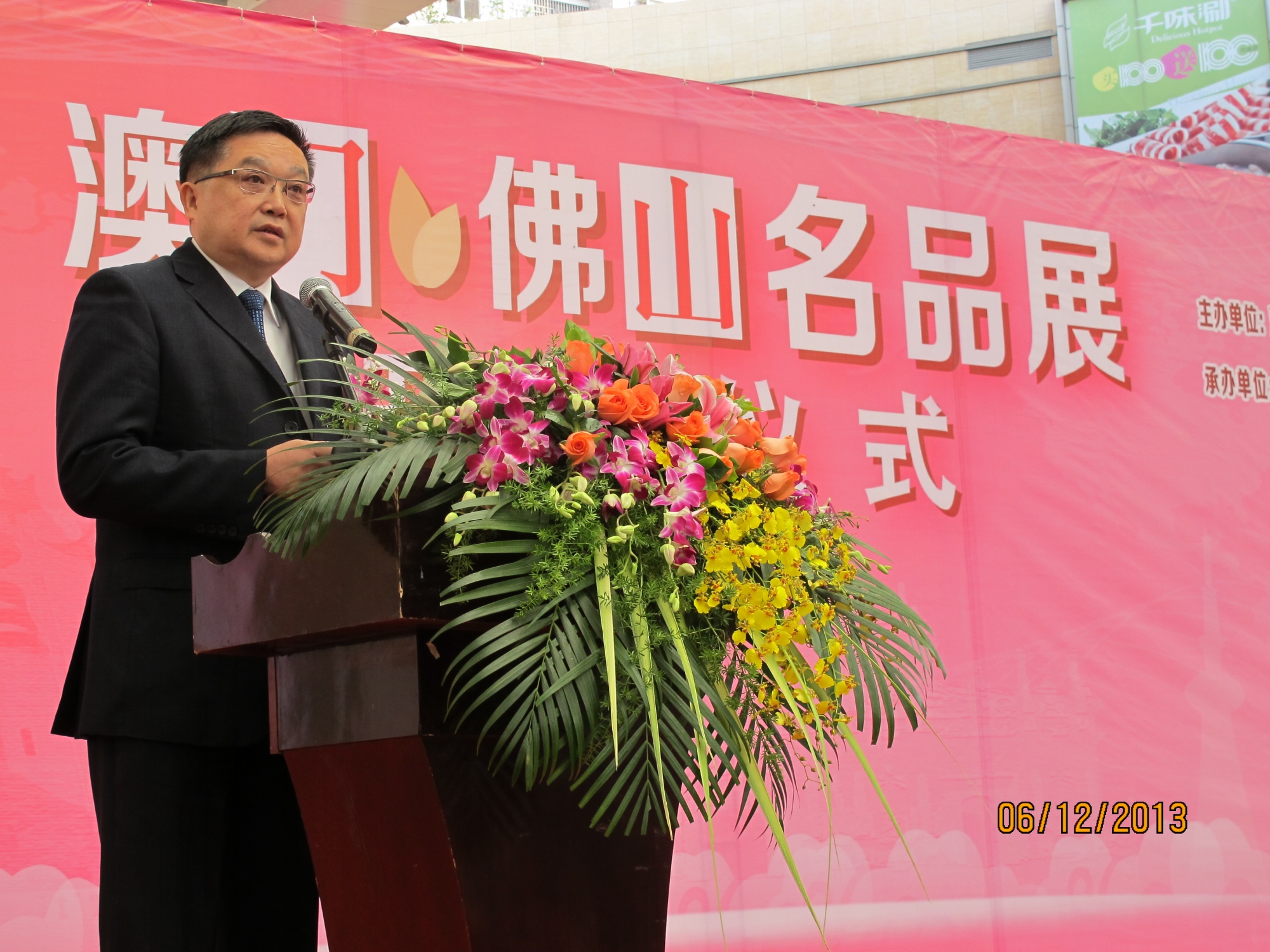 澳門貿易投資促進局張祖榮主席在開幕儀式上致辭表示,佛山和澳門的聯繫與合作悠久淵源,近年來兩地通過CEPA平台,先行先試,深化合作,取得了一系列成果,實現了優勢互補和共同發展。值CEPA簽署十週年,為全面貫徹落實《粵澳合作框架協議》,進一步擴大粵澳經貿合作空間,共同推動粵澳兩地會展業的發展,佛澳兩地政府首次在佛山携手舉辦“2013澳門・佛山名品展”,這亦是本局第一次在內地商場舉辦的展銷活動。“2013澳門・佛山名品展”成為深化粵澳合作、推進佛澳合作的一項新舉措。