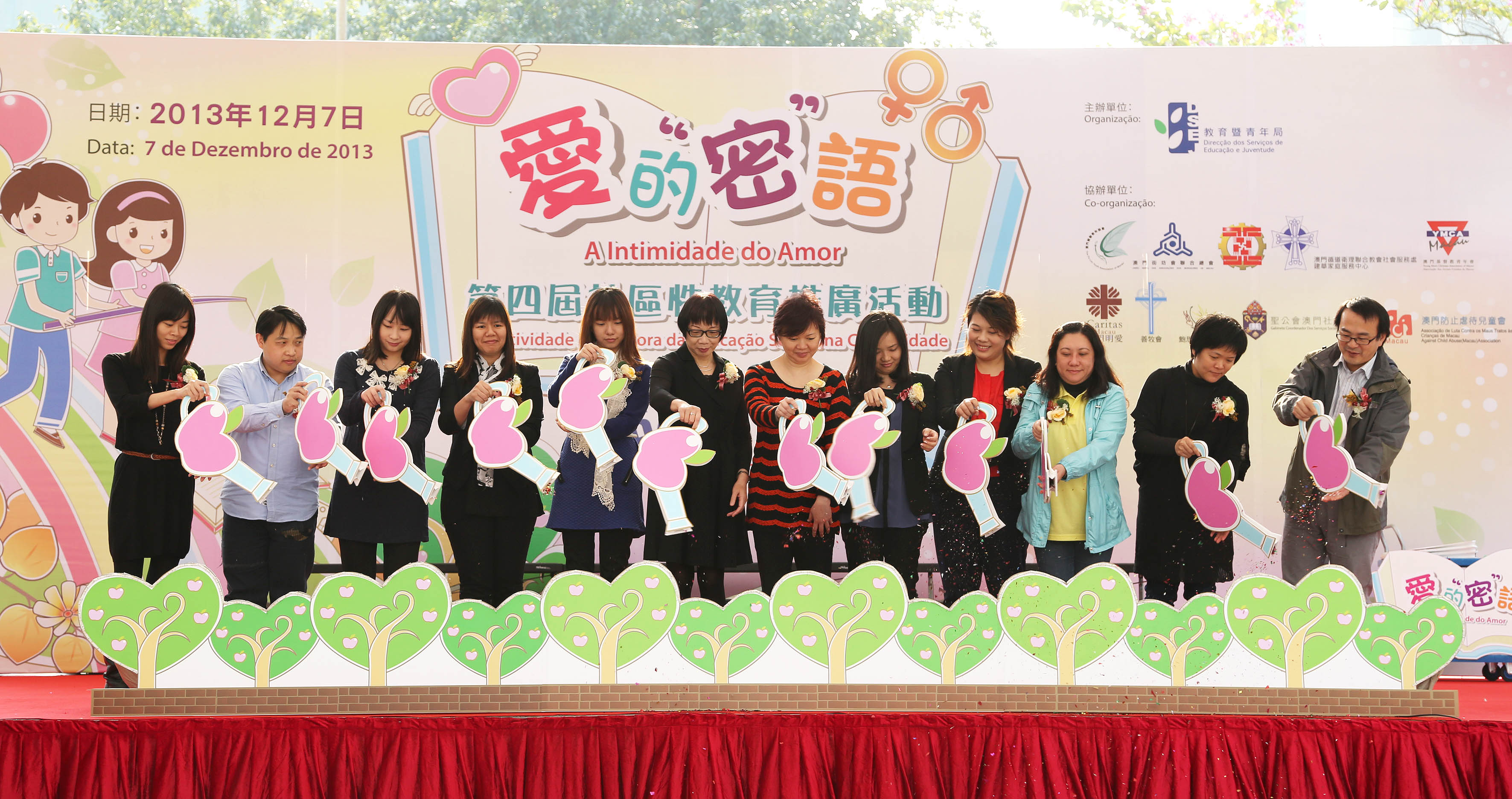 “愛的‘密’語──第四屆社區性教育推廣活動”於十二月七日下午在友誼廣場舉行了啟動日,為是次為期三個月的性教育推廣活動揭開了序幕。教青局副局長郭小麗、教育廳廳長梁慧琪及各個協辦單位代表主持啟動儀式,寓意政府和社會服務團體齊心合力,把“健康親密關係”的訊息推廣至社區,共同培育下一代茁壯成長。活動現場還有一系列的精彩節目,包括歌手演唱、魔術表演、管樂表演、流行舞、互動遊戲、有獎問答及攤位遊戲等,並舉行“學校性教育支援計劃”嘉許儀式。教青局向參與計劃的學校頒發嘉許狀,感謝學校的支持,肯定學校對性教育工作所做的努力。獲嘉許的部分學校代表更即場分享參與計劃的心得,認為有關計劃對學校在性教育規劃、學生學習及教學人員的專業成長等方面均有所裨益。