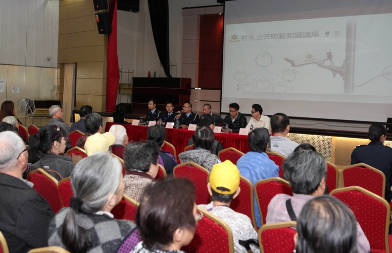 講座由治安警與民眾建澳聯盟合辦,主題針對盜、騙、搶等罪案,向區內居民講解常見犯罪手法及防範要領,藉以加強歲晚防罪意識,講座中市民積極提出問題和建議,氣氛熱烈;警方代表即場回應,並把有關範疇的意見予以記錄及跟進。講座結束後,治安警代表隨即與該團體之社區聯絡主任陳德勝等會面。雙方就近期區內治安形勢、逾期逗留、交通問題、警民合作等交換意見,團體代表希望日後多作座談,與各區域業主會保持良好溝通,在社區警務聯絡機制下促進互信、緊密、高效的合作。