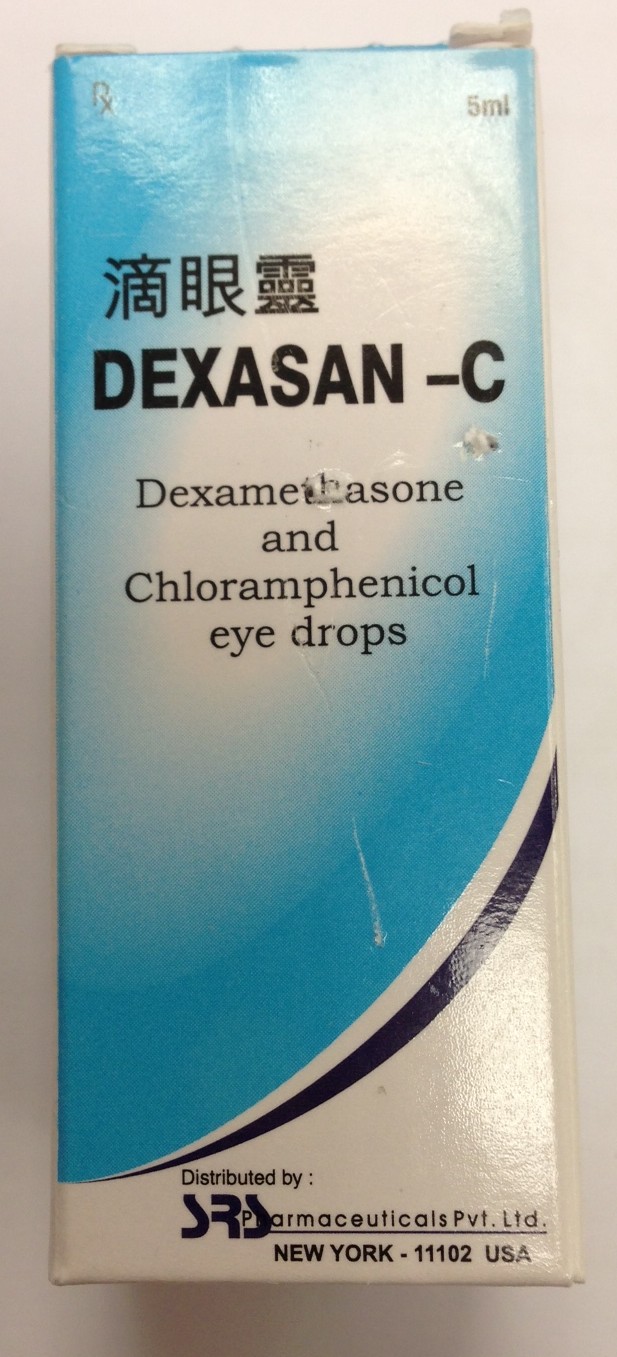 據香港衛生署通報,由印度藥物生產商“SRS Pharmaceuticals Pvt Ltd”生產,批號為AS033的抗發炎眼藥水 (Dexasan-C Eye Drops)中一種藥物主成份含量低於標準,故該批次藥物須被回收。