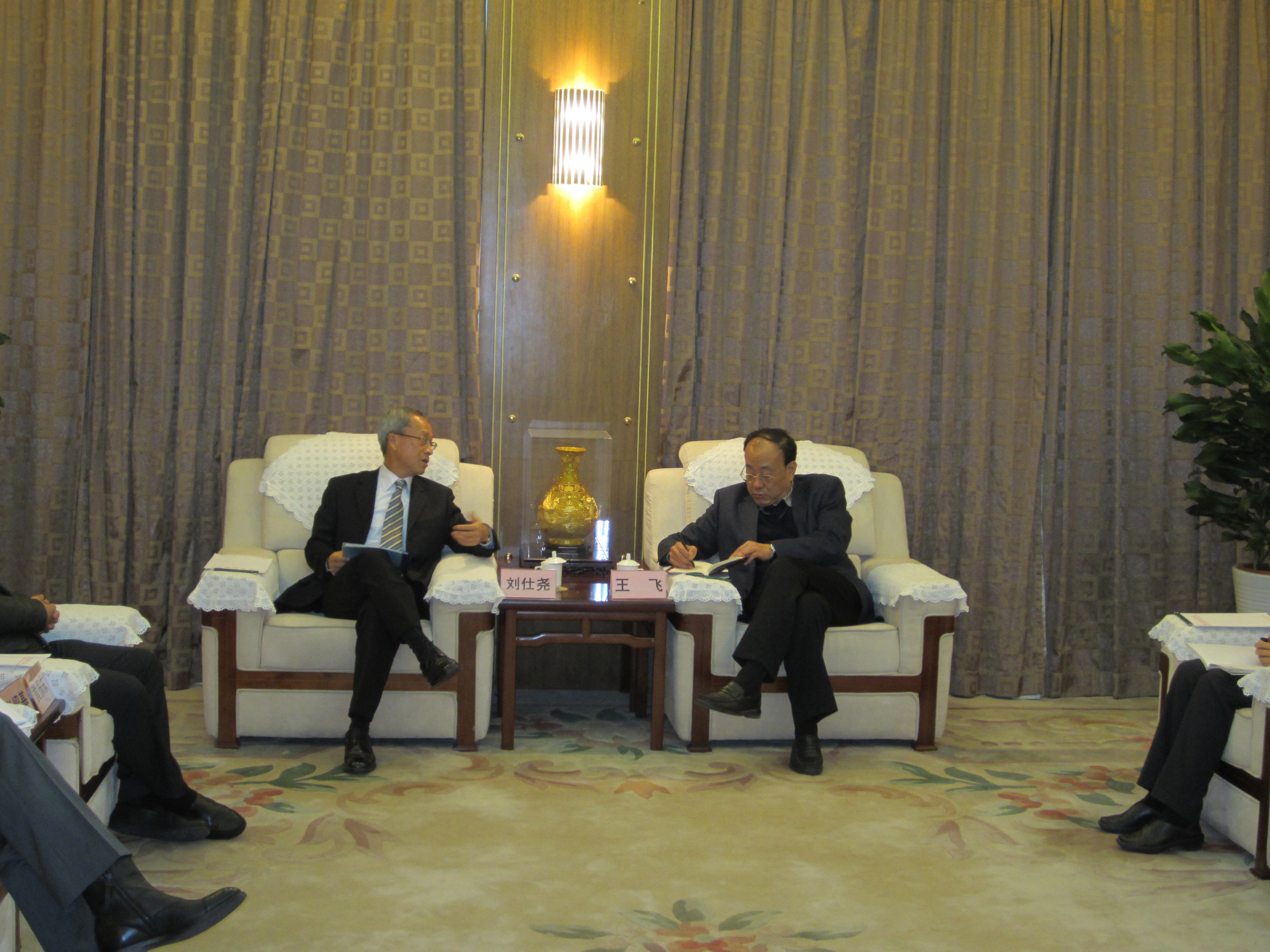 海洋局副局長王飛及環境保護部副部長翟青分別接見了代表團,並就惰性拆建物料及廢舊車處理的有關環保合作項目進行探討。劉仕堯表示,澳門近年高速發展,環境問題已成為社會大眾極為關注的議題。由於澳門地小人多,要解決存在的環境問題或開展新的環保政策,都存在一定的限制和難度,希望透過區域合作方式去處理這些問題;會面中並介紹了目前透過粵澳合作機制,特區政府就有關項目所開展的研究,以及配合有關項目在內地審批流程所進行的工作,讓部門更好地了解項目的進展情況。此外,劉仕堯表示,特區政府對透過區域合作的方式處理有關環保問題是高度重視的,在粵澳合作及珠澳合作的層面不斷推動有關工作,今年六月份和十一月份舉行的粵澳聯席會議及珠澳合作會議上,經過不斷的努力和協調,粵澳及珠澳政府分別簽署了環保合作協議,進一步加強環保範疇的區域合作,相信可為未來的工作開創了一個良好的發展條件。