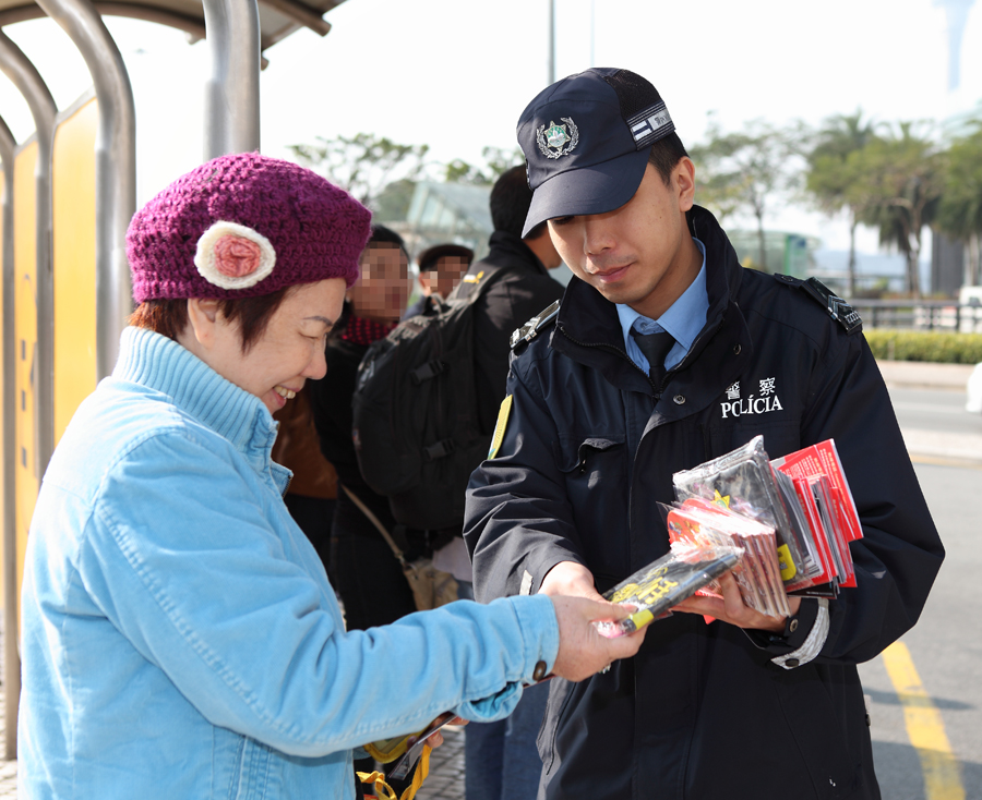 治安警察局呼籲各位居民及旅客,在冬防期間應避免攜帶大量現金外出,切記“財不可露眼”;在人多擠迫、乘車或候車期間都要特別警惕,隨身掛包要拉好拉鏈,置於胸前保護;如發現可疑人士或目睹罪案發生,應發揮守望相助的精神制止並即時報警求助。