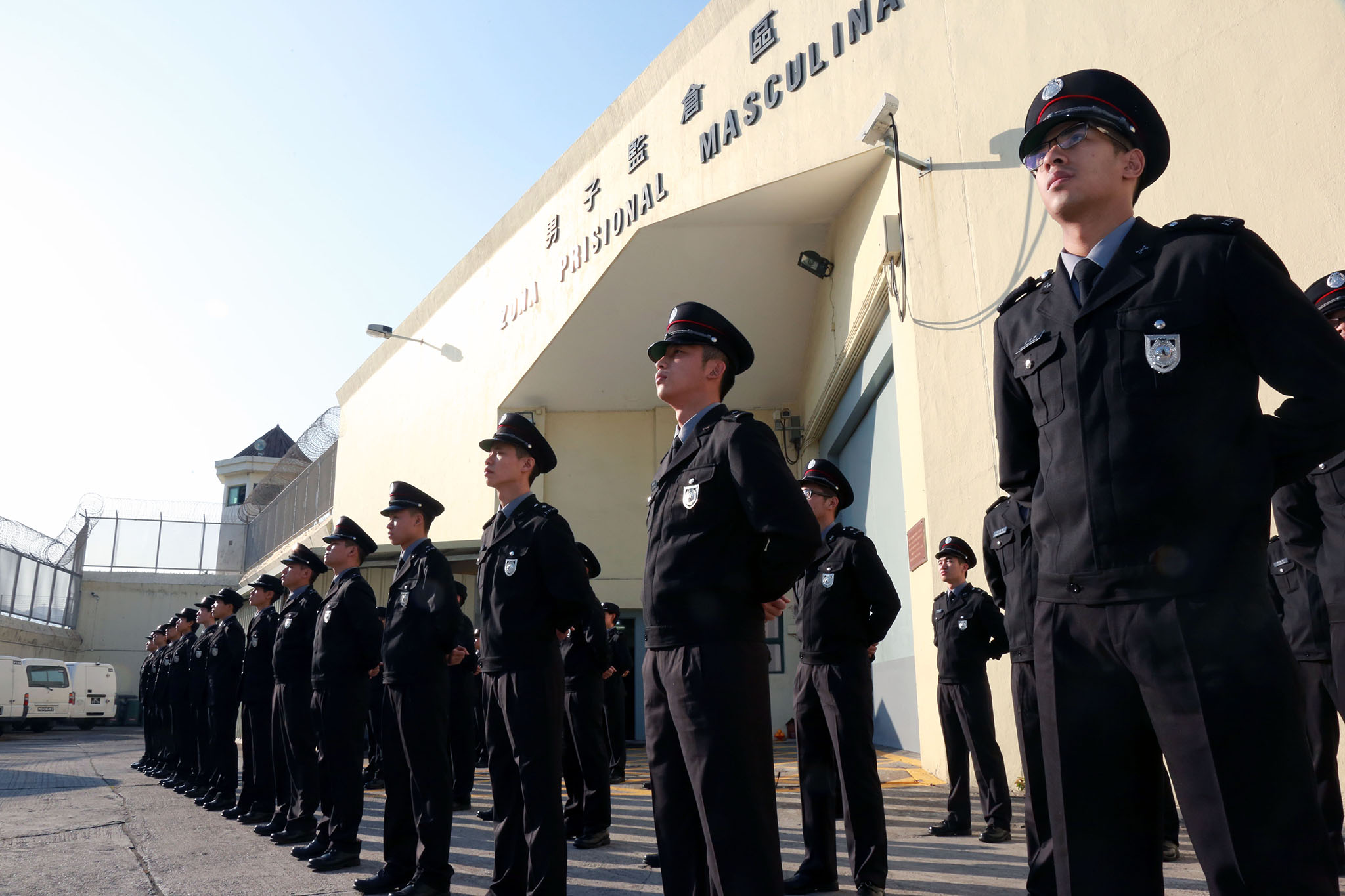 剛就職的獄警人員於去年初開始接受為期共11個月的基礎訓練、專業訓練及工作實習階段。基礎訓練階段歷時2個月,學員須接受步操、射擊、槍械及爆炸品的認識等軍事訓練,各類型的體育訓練,以及學習民防、急救、法律、語言等知識;專業訓練階段則長達6個月,期間需學習與職務相關的專門技術與操作訓練,包括看守職務課程、保安裝備及射擊課程、防暴、押解、搜查等特別職務訓練、以及野外搜索訓練等,同時還需要完成犯罪心理學、情緒管理等思維發展課程;最後經過為期3個月的工作實習階段,以體驗監獄各個崗位的工作性質,將所學的理論加以實踐。