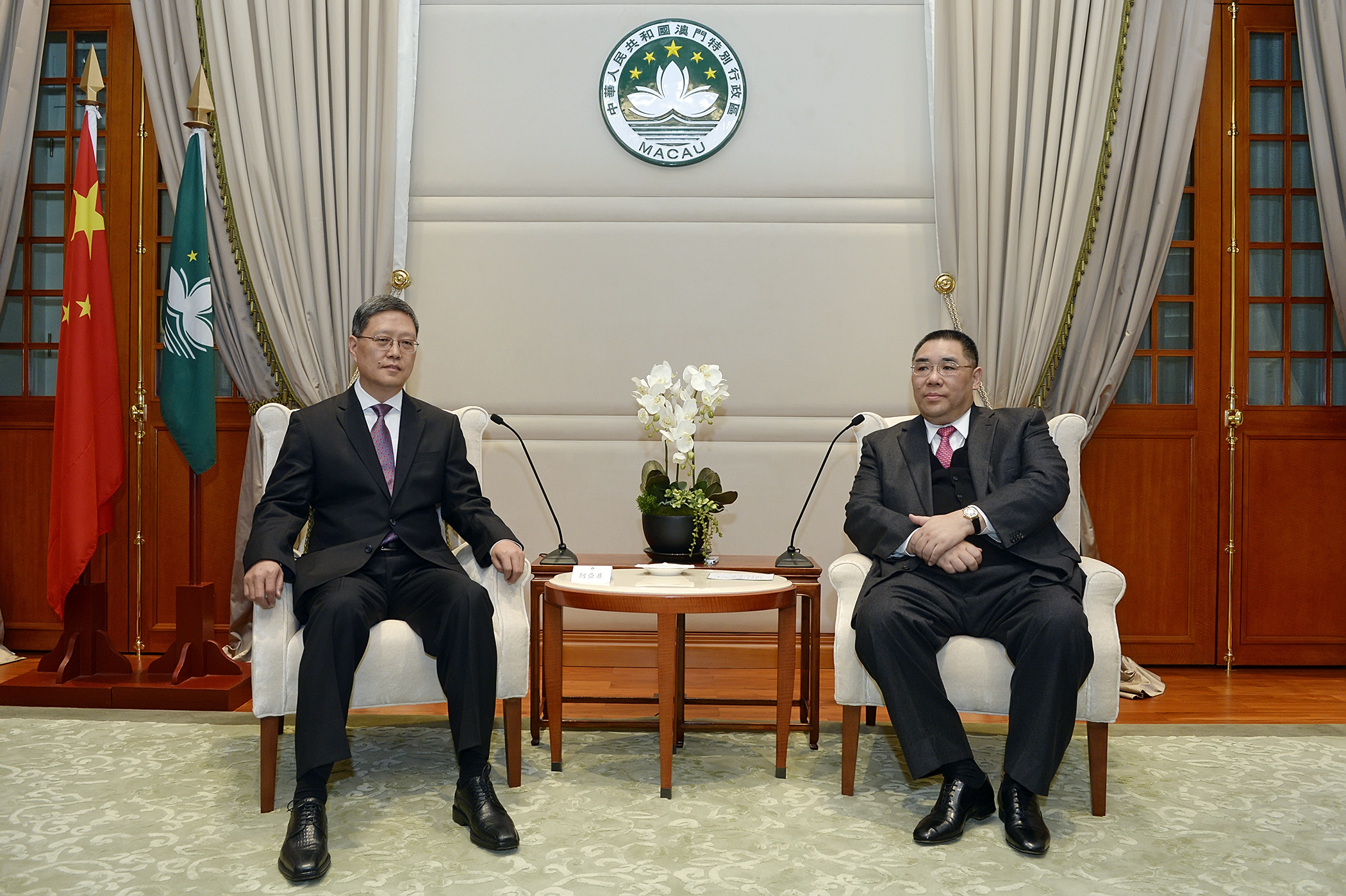 參加會見的包括國務院僑務辦公室港澳台司副司長盧海田,行政會秘書長柯嵐、澳門歸僑總會會長黎振強、常務副會長劉藝良及理事長王彬成。