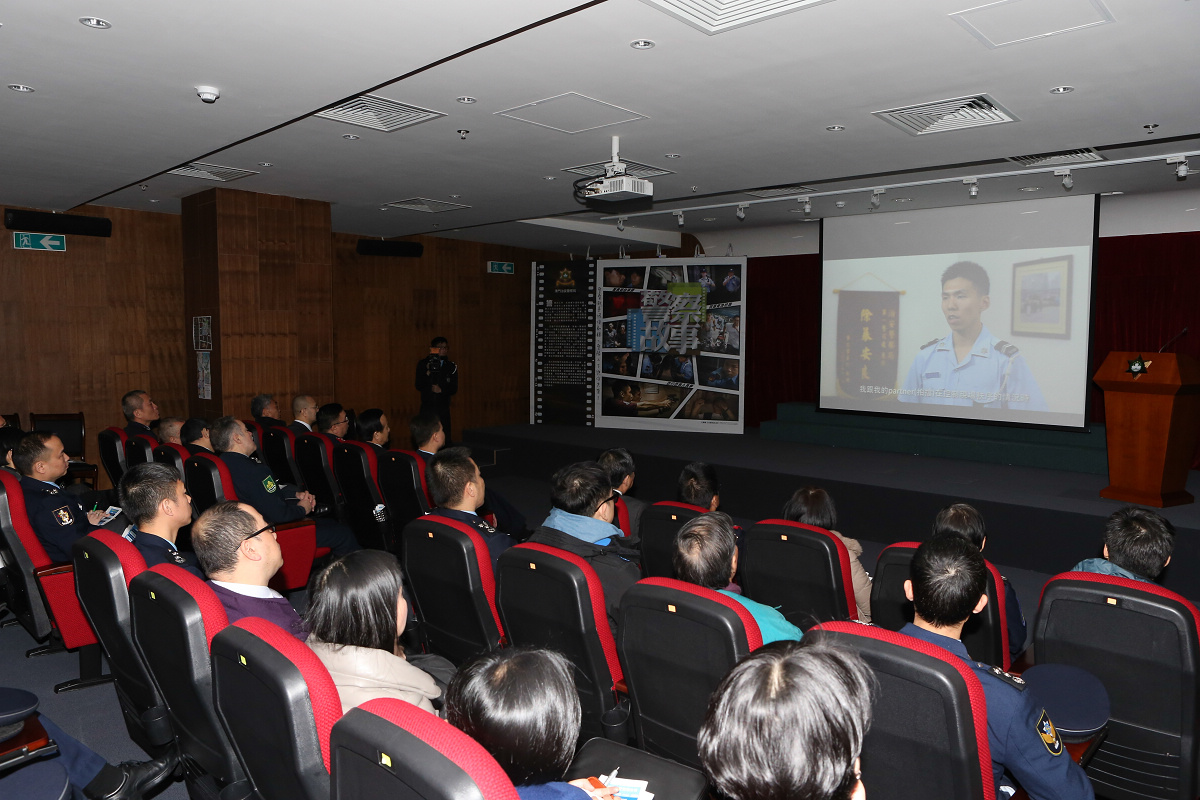 今日上午,治安警察局在出入境事務廳大樓舉辦了「警察故事獻映活動」首映禮以及「我最喜愛警察故事」投選活動。局長馬耀權及各部門主管、新聞局代副局長黃樂宜、公共服務評審委員會代表余永逸、吳紹宏等、社區警務協作社團負責人包括物業管理業商會劉藝良會長、街坊總會周宜心副理事長、民眾建澳聯盟施家倫理事長,以及多名社區聯絡主任等均出席了活動。