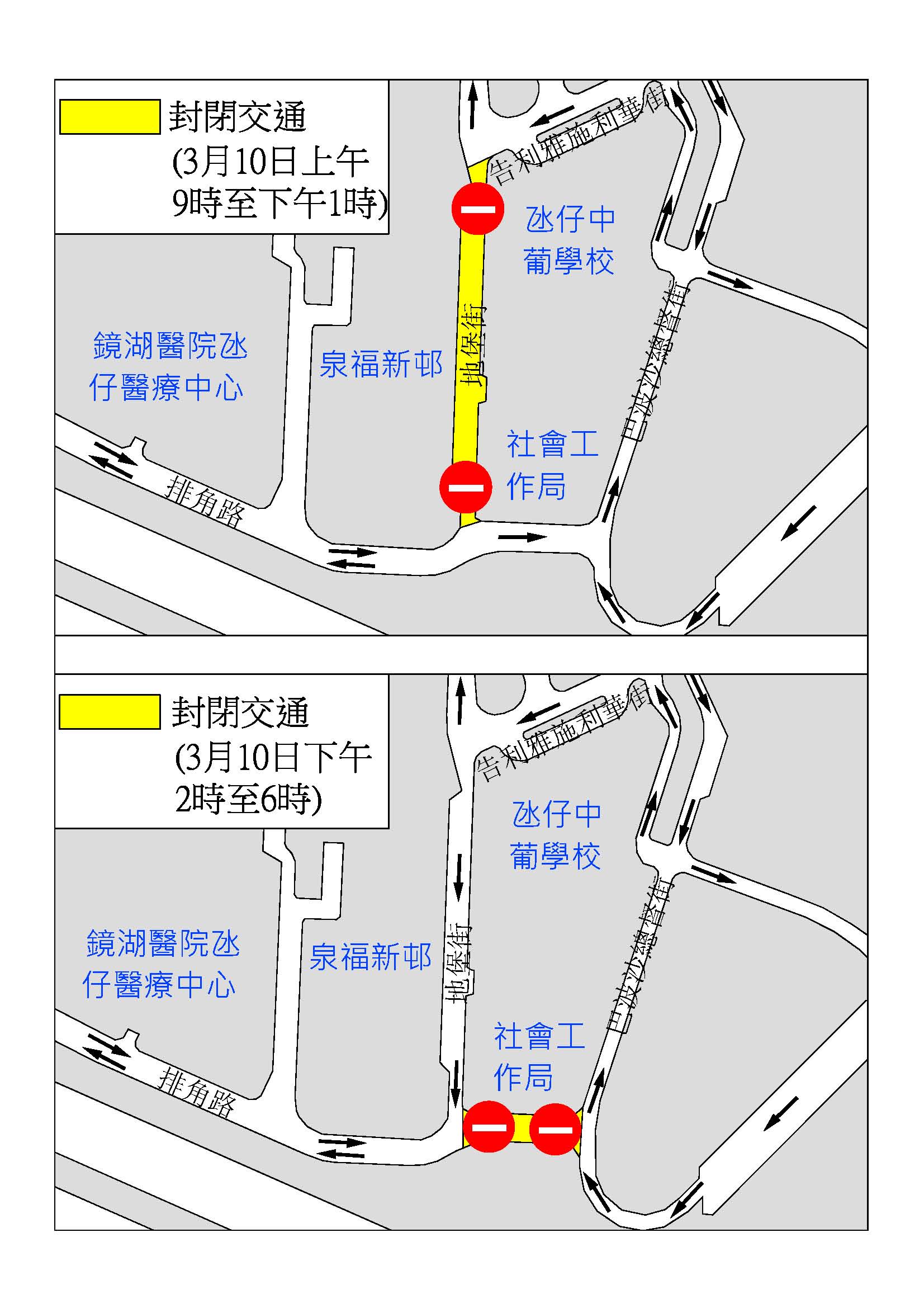 地堡街及排角路臨時交通安排