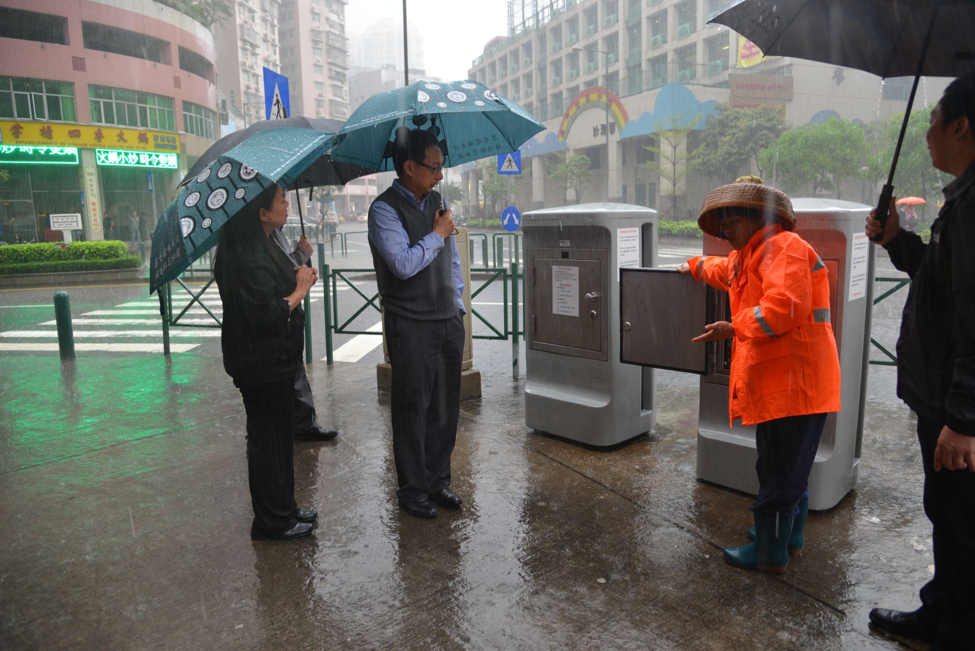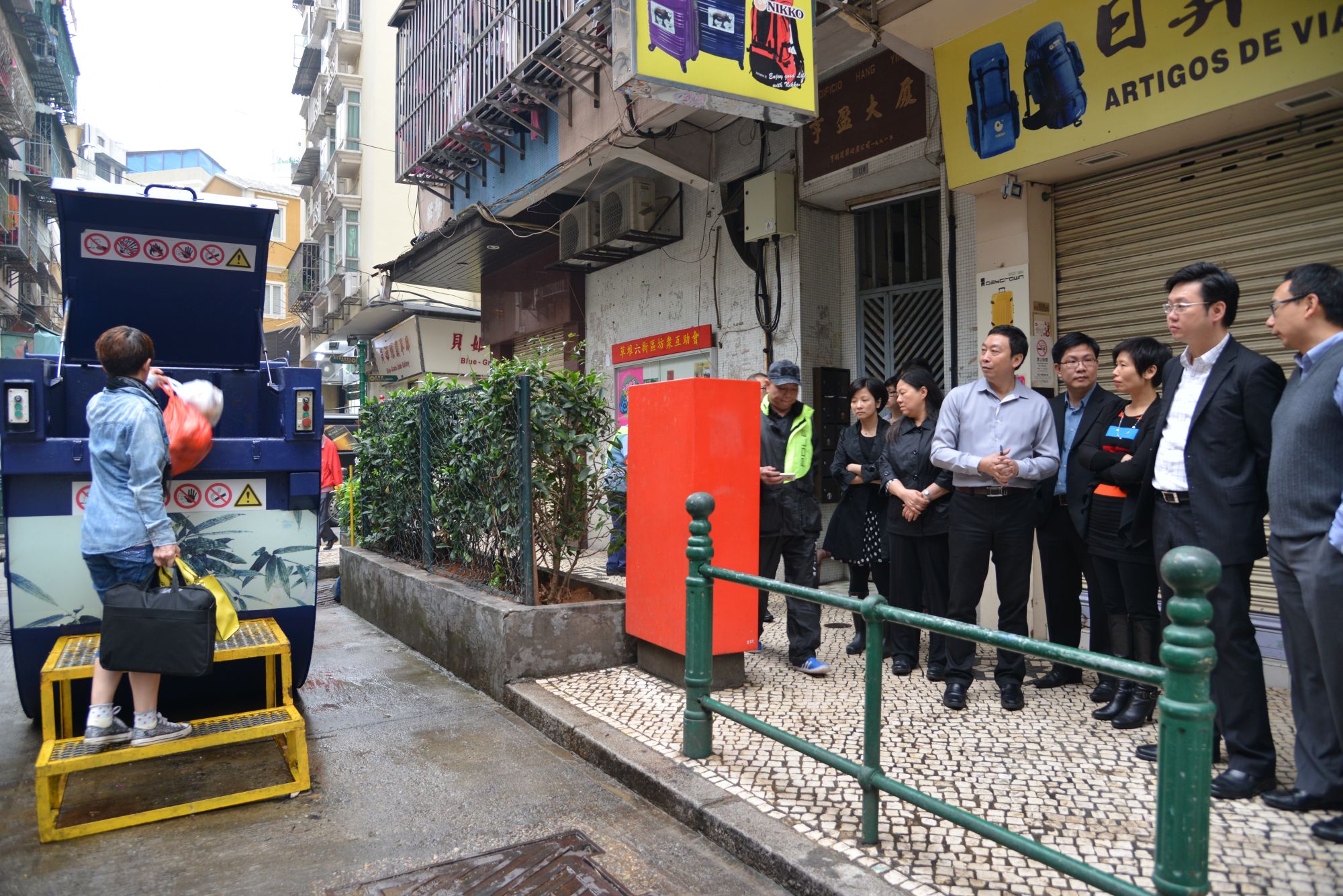 環境保護局張紹基局長、韋海揚副局長、黃蔓葒副局長,以及民政總署管理委員會吳秀虹委員、環境衛生及執照部馮惠星部長、環境衛生處何炳雄處長等,聯同營運公司管理層今早先後到大三巴牌坊一帶、草堆街,以及黑沙環區的固體垃圾自動收集系統和新建公共房屋等多個地點視察,瞭解新合同開展首日的市面清運服務的情況。按實地觀察和聽取營運公司匯報,清運服務運作正常,員工如常工作。而按照新合同要求,營運公司新增設的24小時服務熱缐(6658 1221)已於今日凌晨零時開通,以更有效地跟進市民的意見和建議。