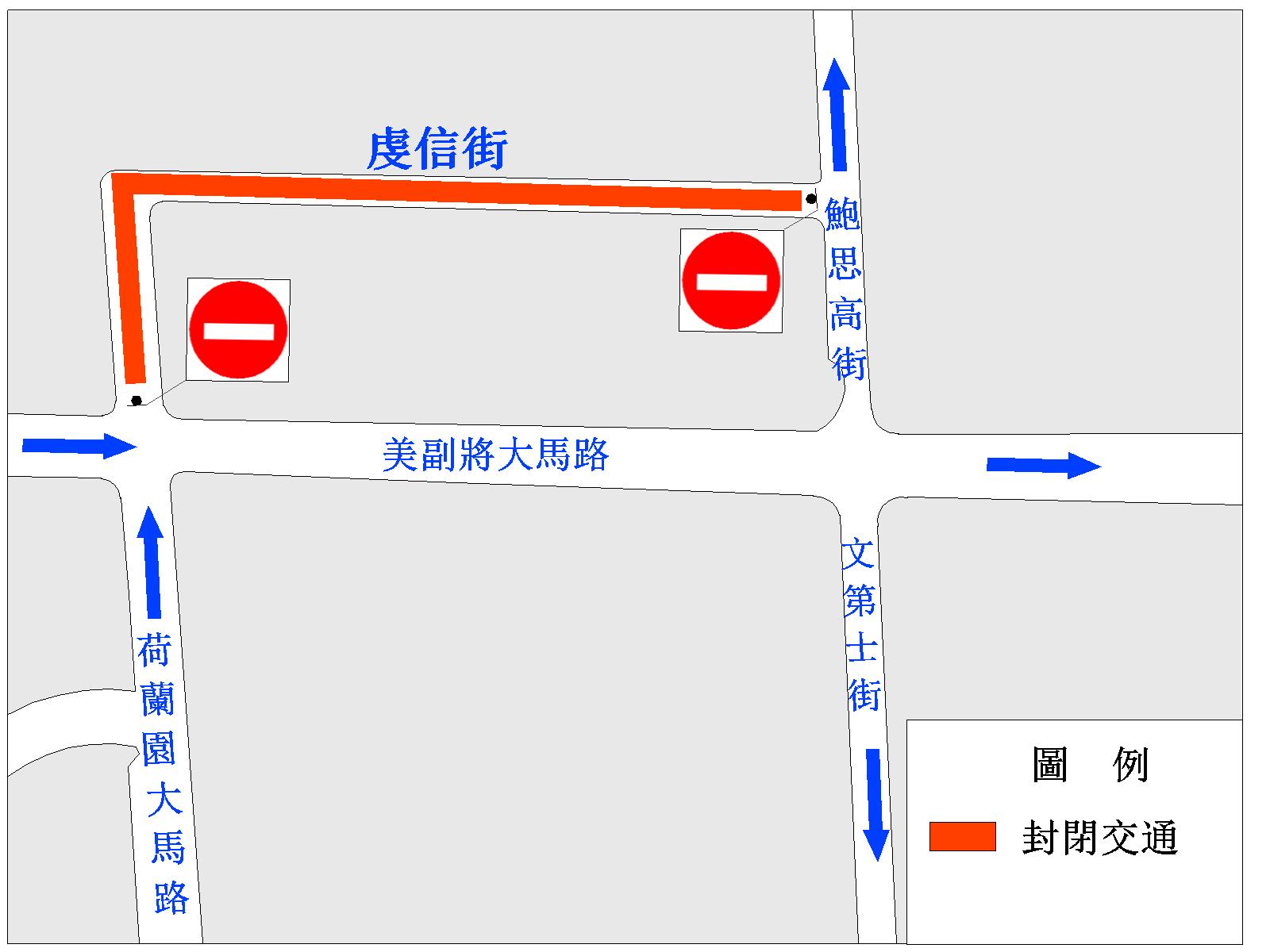 此外,介乎高勵雅馬路與偉龍馬路之間的一段氹仔雞頸馬路(由高勵雅馬路駛往孝思墳場再駛往偉龍馬路的方向)、路環打纜街及打纜前地(由打纜前地往恩尼斯總統前地方向)、介乎船鋪前地與譚公廟前地之間的一段路環十月初五馬路(由船鋪前地往譚公廟前地方向),以及介乎譚公廟前地與鄉村馬路886號之間的一段鄉村馬路(由譚公廟前地往鄉村馬路886號方向)亦於周六、日上午8時至晚上7時,臨時改作單向行車。