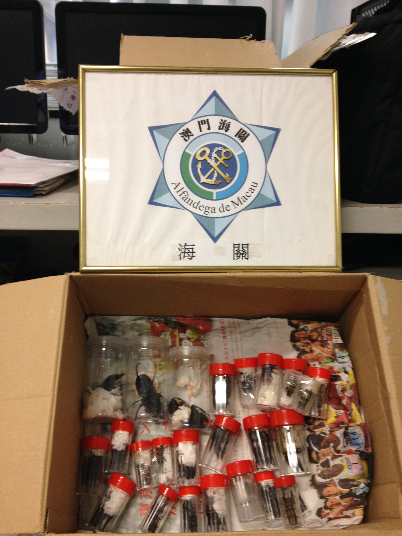 於本月初,澳門海關對進出澳門的快遞文件及包裹進行常規檢查時,揭發一宗以郵寄模型為名的包裹,內藏活體動物甲蟲為實的違例案件。在經民政總署獸醫初步判斷後,證實為需經預先許可申請進口准照的長戟大兜蟲,海關傳訊一名本地男子到海關總部協助調查,將以其涉嫌違反了第七/二零零三號法律(對外貿易法)之規定而作出起訴,案件已交由海關知識產權廳技術及訴訟處開展有關違例訴訟程序預審工作,若被判罪成,可被科處澳門幣伍仟元至拾萬元之罰款,而所涉案的貨物將撥歸澳門特別行政區所有。海關呼籲寄/收貨物者要遵守相關法律,而各快遞業務營運商,亦須與海關通力合作並遵守相關義務,共同打擊非法快遞活動。