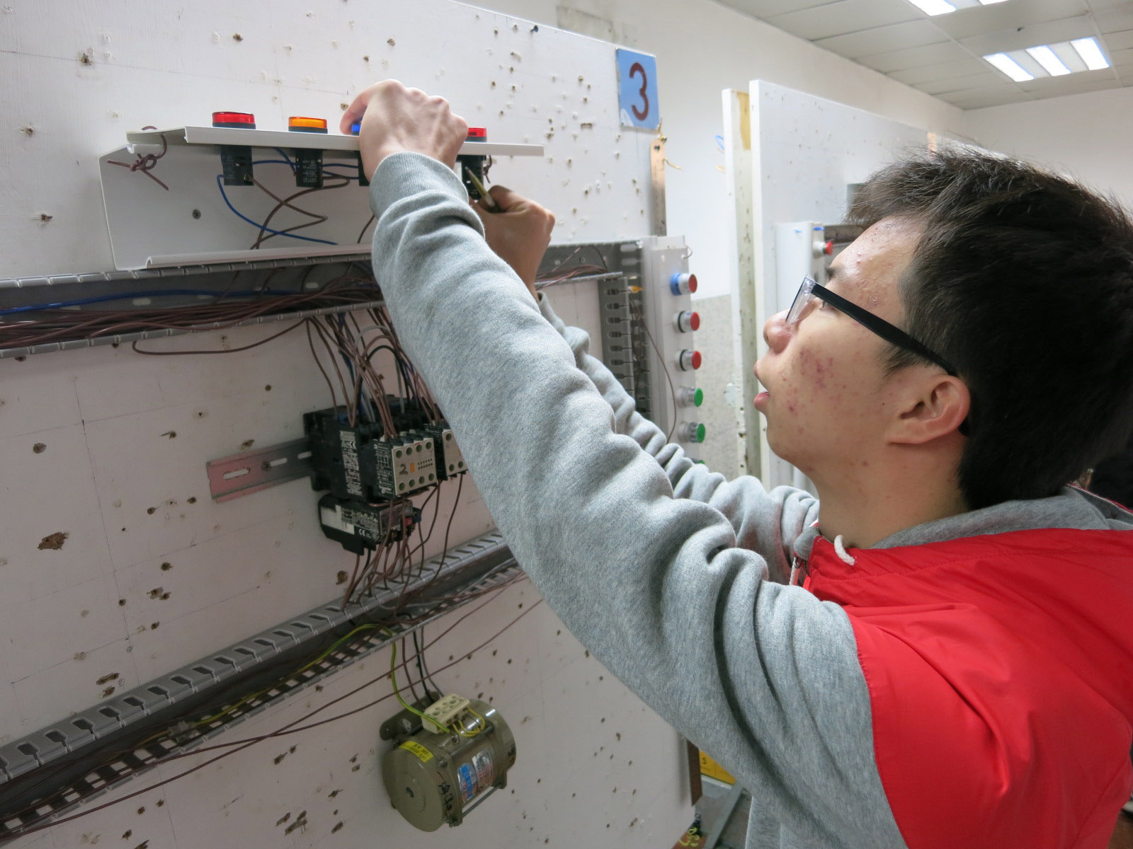 • 電氣裝置課程學員正進行電動機控制線路安裝
