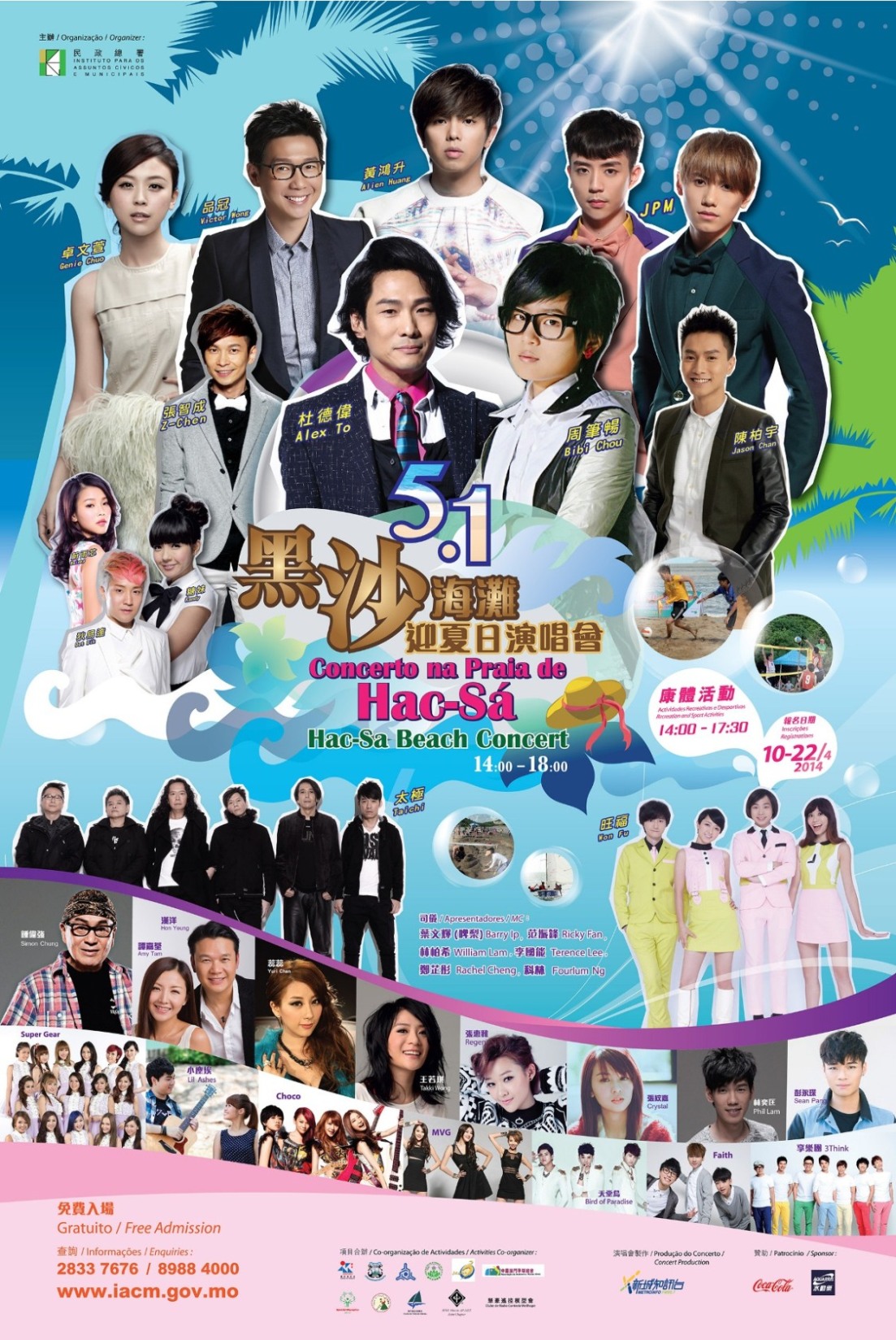 是次開放式演唱會,觀眾可免費入場,不設門票及座位。如天氣出現變化,主辦單位將因應情況調整活動安排,敬請參與人士留意並遵守現場工作人員指示。民政總署冀望藉著假期的沙灘演唱會及一系列康體節目,讓市民有更多機會欣賞優質音樂、享受水上活動及親子坊帶來的樂趣。活動詳情可瀏覽民政總署網頁www.iacm.gov.mo。