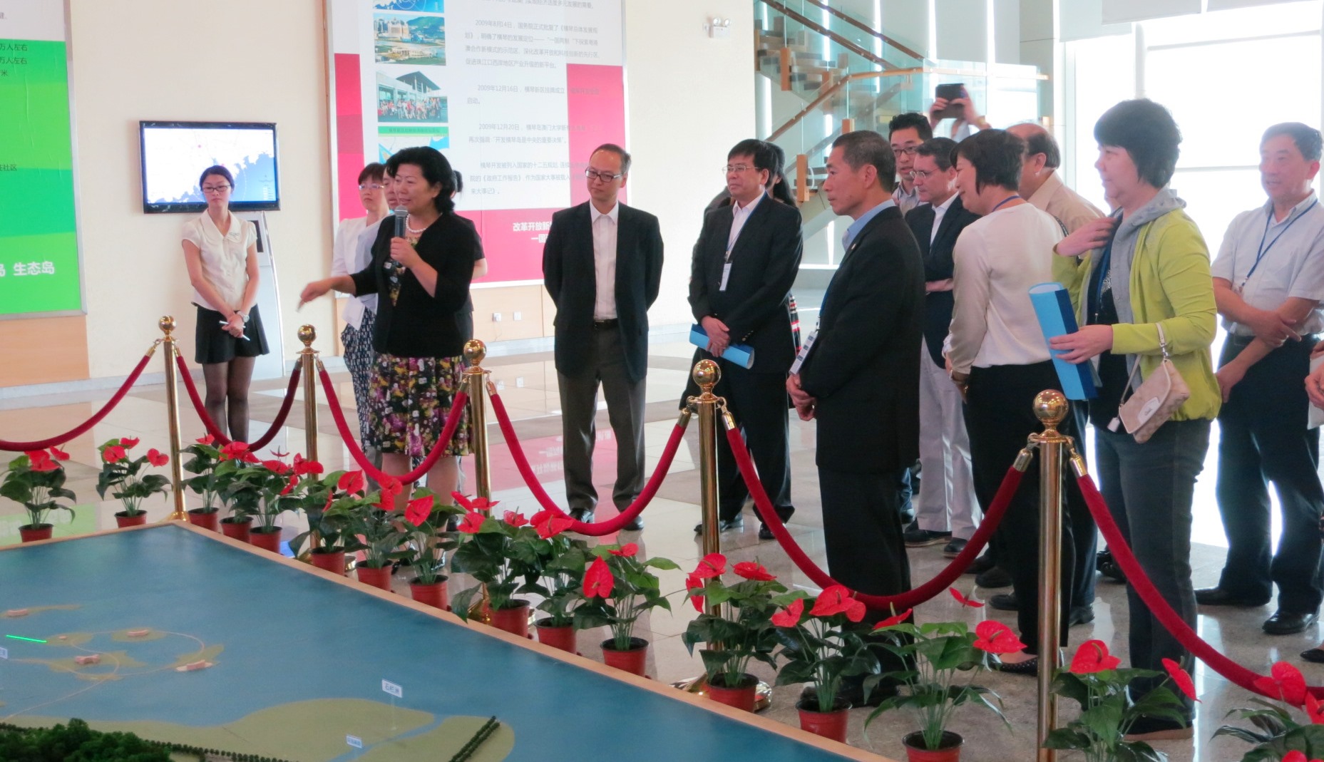 考察團拜訪橫琴新區管理委員會,獲得黨委書記劉佳和副主任葉真的熱情接待。劉佳表示,橫琴新區是粵港澳合作新模式的示範區,經過4年的開發建設,區內基礎設施建設基本完成,相信澳門高校考察團此行可更直觀地了解和掌握橫琴新區的最新發展情況。隨後,考察團參觀了橫琴新區規劃建設展示廳,了解橫琴新區的總體發展規劃。並與橫琴新區管理委員會舉行座談會,雙方就橫琴新區未來的人口規劃、教育發展、人才培養、醫藥衛生、科教研發、生態發展等方面展開深入地探討和交流。