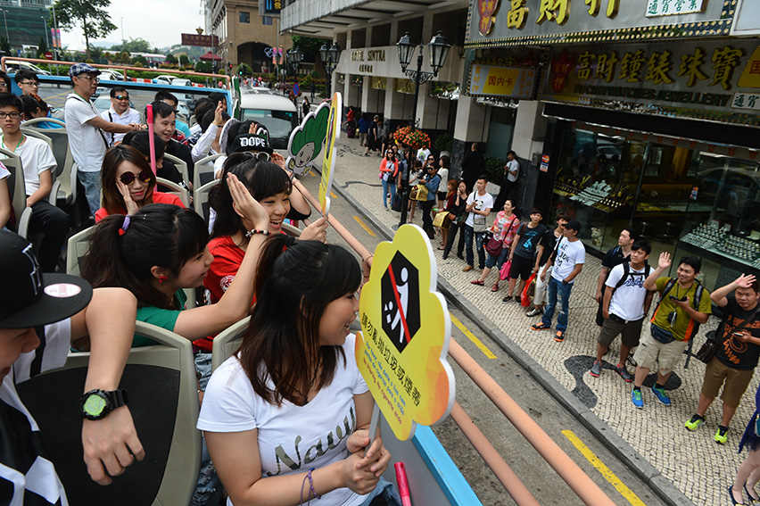 民署於五月三日及五月四日,利用開蓬巴士駛至本澳各著名景點,並派員在車上舉起寫上保持城市清潔的宣傳牌,不斷向兩旁遊客及市民作出呼籲;同時間,民署亦安排了“城市之友”義工隊前往觀光塔、金蓮花廣場及關閘廣場等旅遊熱點派發宣傳單張及紀念品,藉以向旅客推廣保持環境衛生及遵守本澳《公共地方總規章》的重要性。
