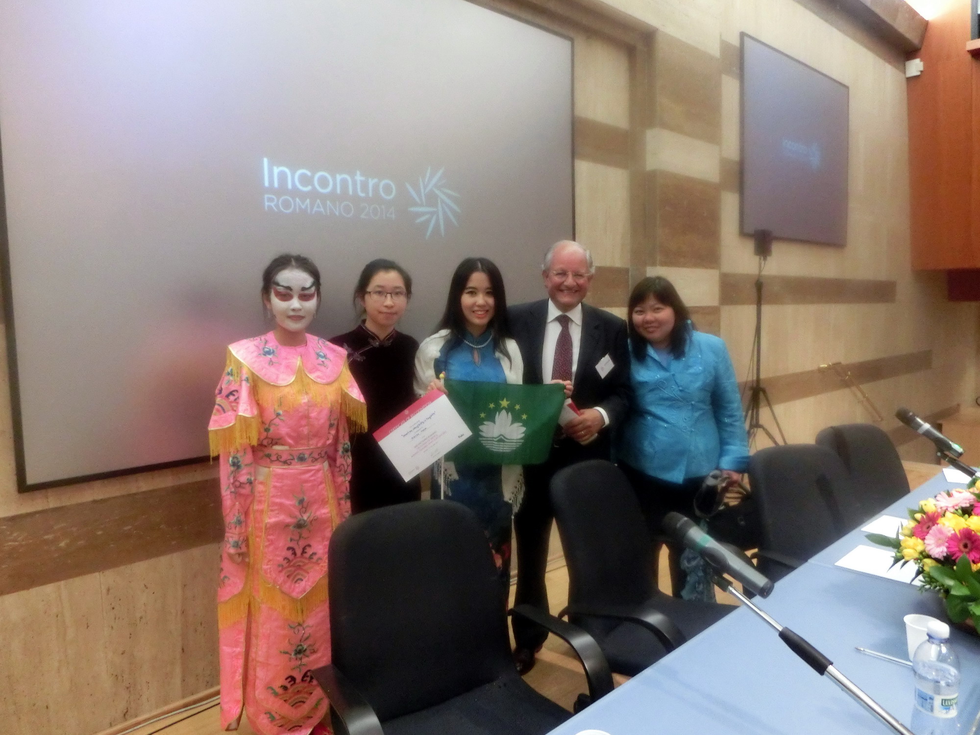 澳門旅遊學院三名學生於上月赴意大利羅馬參加2014年羅馬國際會議(Incontro Romano 2014),並取得 “2014年最佳研究項目大獎” 。旅遊學院學生連續三年參加該國際會議並獲得獎項。