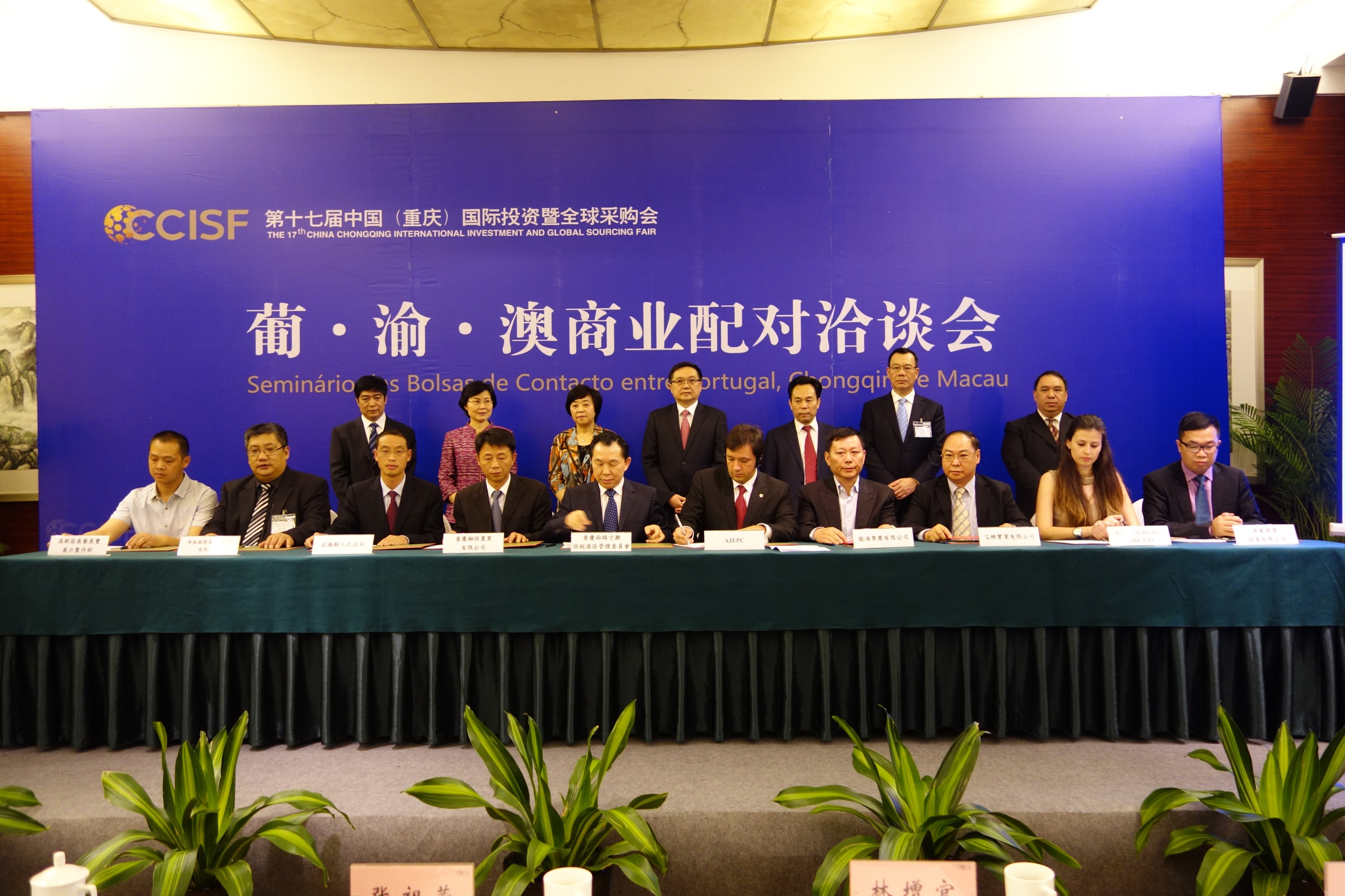 在“葡.渝.澳商業配對洽談會”期間,還舉行項目簽約儀式,涉及葡語國家食品代理、會展、餐飲、房地產等五個方面的合作,會上亦促成了超過三十場商業配對洽談。