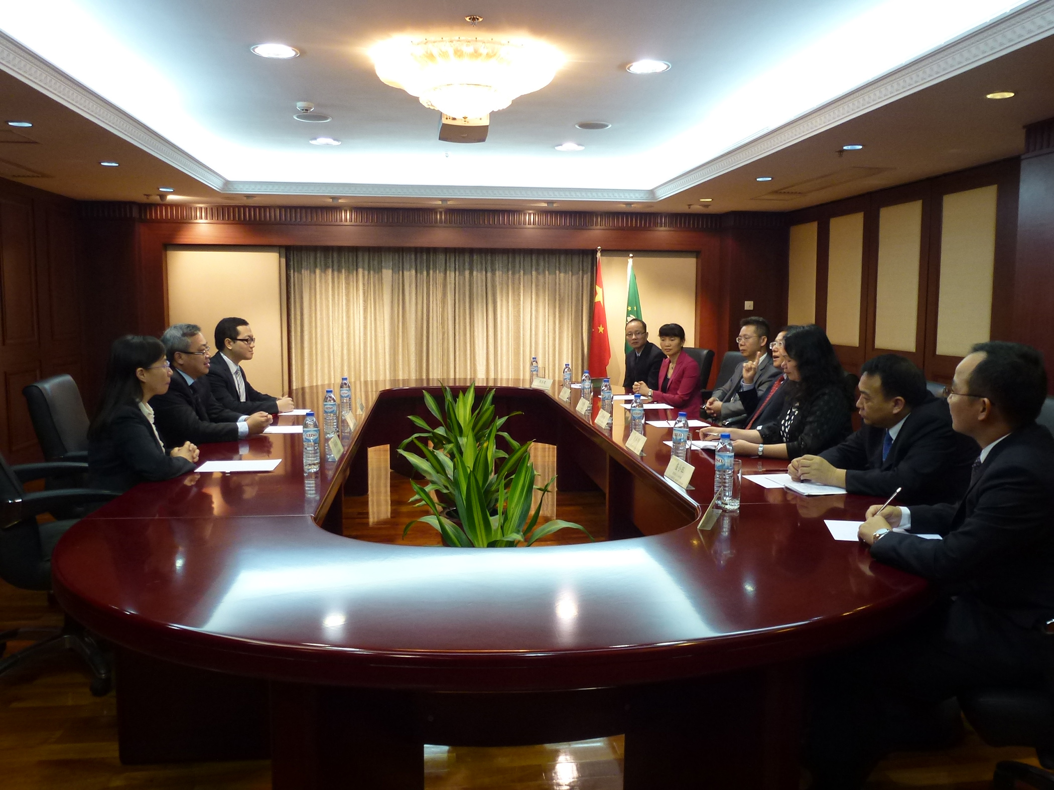 由廣東省人民檢察院副檢察長、廣州鐵路運輸檢察分院檢察長王雁林率領的廣東省人民檢察院代表團,於上周三至五(十五日至十七日)期間到訪特區檢察院,獲特區檢察院代理檢察長馬翊熱烈歡迎,並與檢察長辦公室主任黎建恩、顧問趙奕、司法輔助廳技術處處長梁永德及律政廳高級技術員鄭鼎基進行會晤。