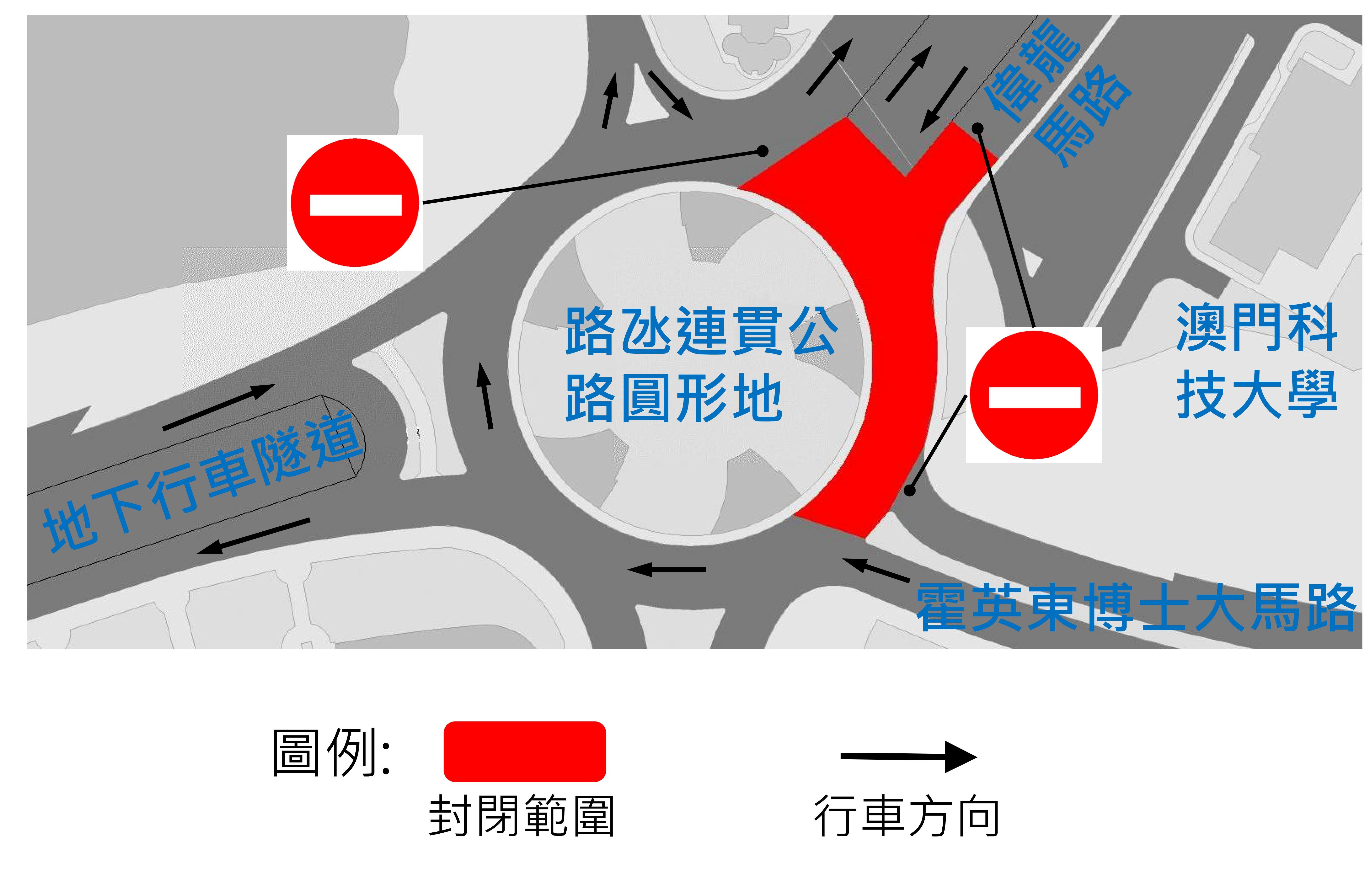 配合建設發展辦公室繼續開展路氹連貫公路圓形地行人天橋之建設工作,路氹連貫公路圓形地近偉龍馬路的路段,以及由澳門科技大學往路氹連貫公路圓形地的一段偉龍馬路將於周三(28日)至周五(30日)每日凌晨0時至6時封閉交通,呼籲駕駛者留意。