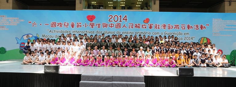為了慶祝六一國際兒童節,讓本澳6至12歲的小學生一起感受節日氣氛,並藉由與中國人民解放軍駐澳部隊的互動交流,提升小學生的民族意識,弘揚愛國愛澳精神,由民政總署、法務局、社會工作局、教育暨青年局、體育發展局組成的“六一國際兒童節組織委員會”與中國人民解放軍駐澳部隊合辦、澳門童軍總會協辦的“2014六一國際兒童節小學生與中國人民解放軍駐澳部隊互動活動”,於5月25日(星期日)上午10時至12時假澳門科技大學順利舉行。