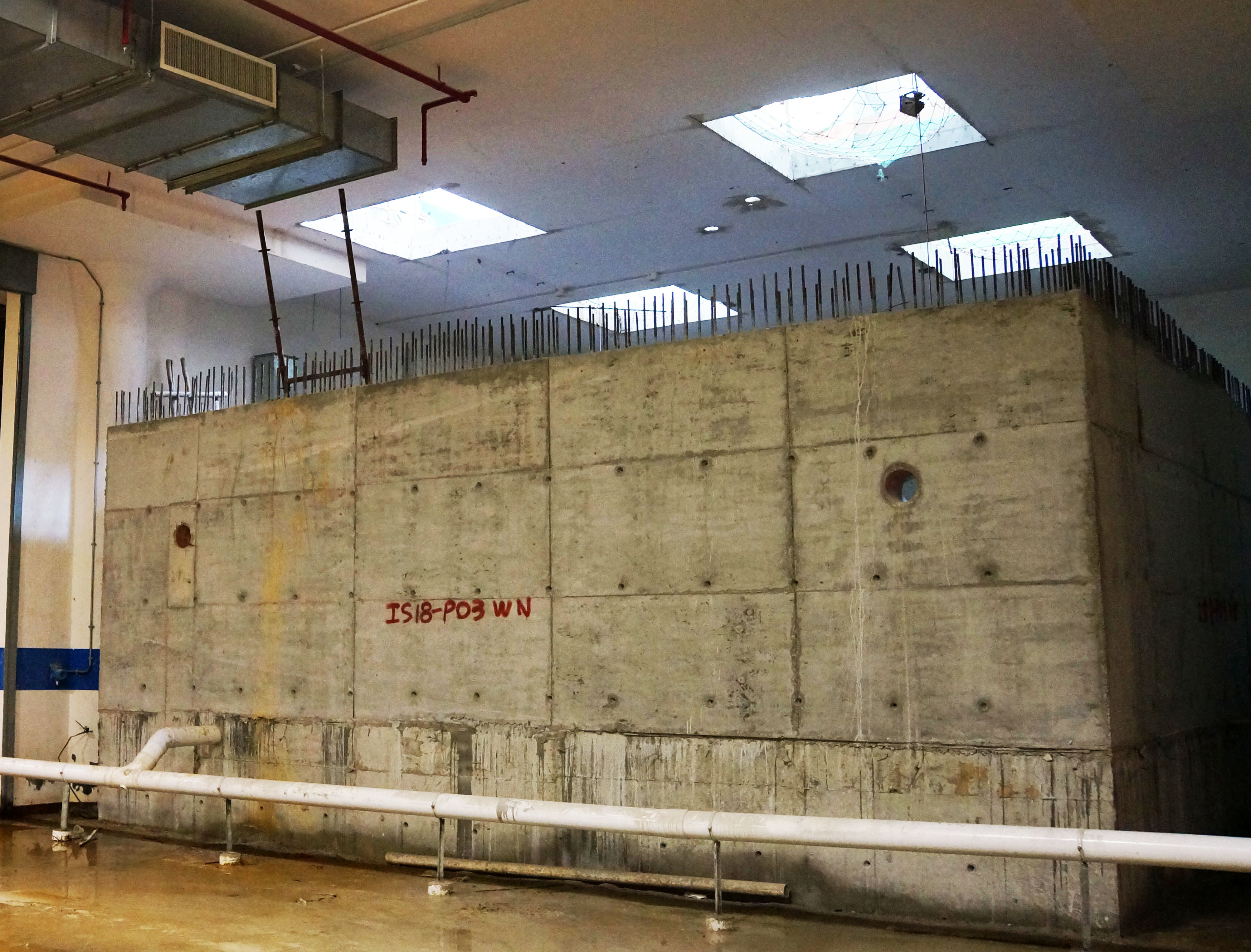 就有關技術問題,運輸基建辦公室積極與施工單位溝通協調,而施工單位亦因應實際環境擬定特殊的施工方法,以順利開展樁基礎工程。其中,施工單位透過於地下停車場加設支撐架提供穩固承托,讓樁機可設置於停車場上方,並穿過兩層停車場樓板開展樁基礎工程的鑽孔工序。另一方面,施工單位亦在鑽樁位置設置長鋼套管,並圍繞樁基礎施工範圍建造3米高的臨時擋水牆及佈置抽水系統,以應對施工過程中可能出現地下湧水的情況,令樁基礎工程可安全和順利地開展。