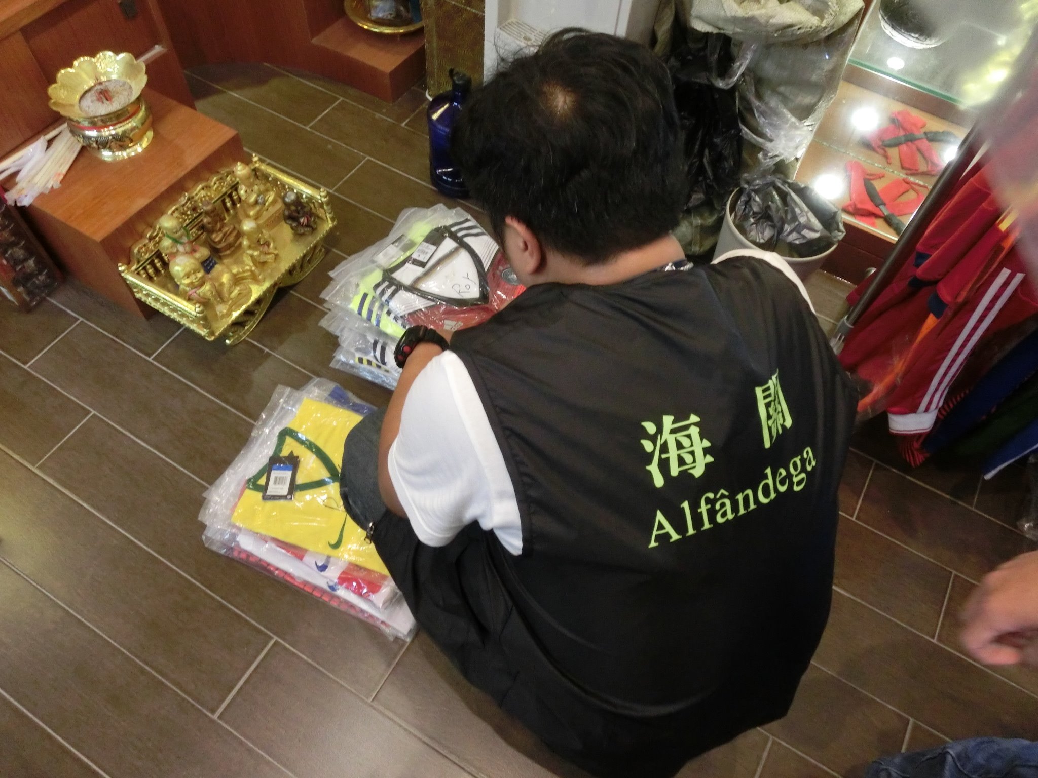 海關知識產權廳根據舉報資料及情報分析,由反互聯網侵權偵查小組在網上巡查發現,不法份子在網上社交媒體中宣傳和販賣,張貼不同國家的熱門球衣招徠潛在顧客,並發現該實體店舖曾遷往其他地方繼續經營,改用新的店舖名稱,以經營佛牌作為掩飾,主要以售賣熱門國家足球隊球衣及替顧客在球衣上燙印徽章為主,視乎顧客的需要,燙印的內容包括世界盃入圍國家隊及歐洲熱門足球隊隊徽、著名球星的名字、字母及號碼等等。因為在世界盃效應下,球迷都想擁有心儀國家隊或球星的球衣以示支持,有人覬覦商機無限的世界盃效應,甘冒刑責之風險而售賣侵權產品的球衣。由於該等懷疑假冒球衣的質料粗劣,而且價格較正牌球衣便宜一半,經相關品牌權利人代表的協助鑑定,證實其中大部份為假冒貨品。海關偵查人員在店舖內查獲懷疑假冒品牌的球衣包括有「Adidas」、「Nike」及「Puma」合共二百九十七件、世界盃入圍國家隊隊徽、歐洲知名球隊隊徽、2014世界盃徽章「Fédération Internationale de Football Association (FIFA)」一批及燙印機一部,該批懷疑侵權的產品若以正價發售,價值超過澳門元十八萬元。上述品牌球衣經核實,其品牌已在澳門特區政府經濟局作出合法註冊登記,而經有關品牌權利人代表初步鑑定,該批球衣大部份為假冒産品。