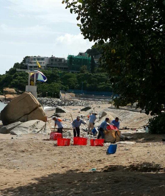 由於颱風關係,黑沙及竹灣泳灘的垃圾有所增加,為儘快恢復海上環境衛生,海事及水務局聯同清潔專營公司加強清理海面及泳灘的垃圾。