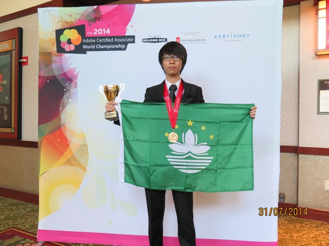 同場舉行的「全球 Adobe 多媒體設計軟件技能大賽」是由美國Certiport及Adobe在2013年開始舉辦。今年的大賽共有16個國家的32名代表參賽。澳門共有兩名代表參賽,分別是張偉恆(理工學院)及黃芷晴(培道中學),其中張偉恆在此項目摘取了全球冠軍的桂冠。