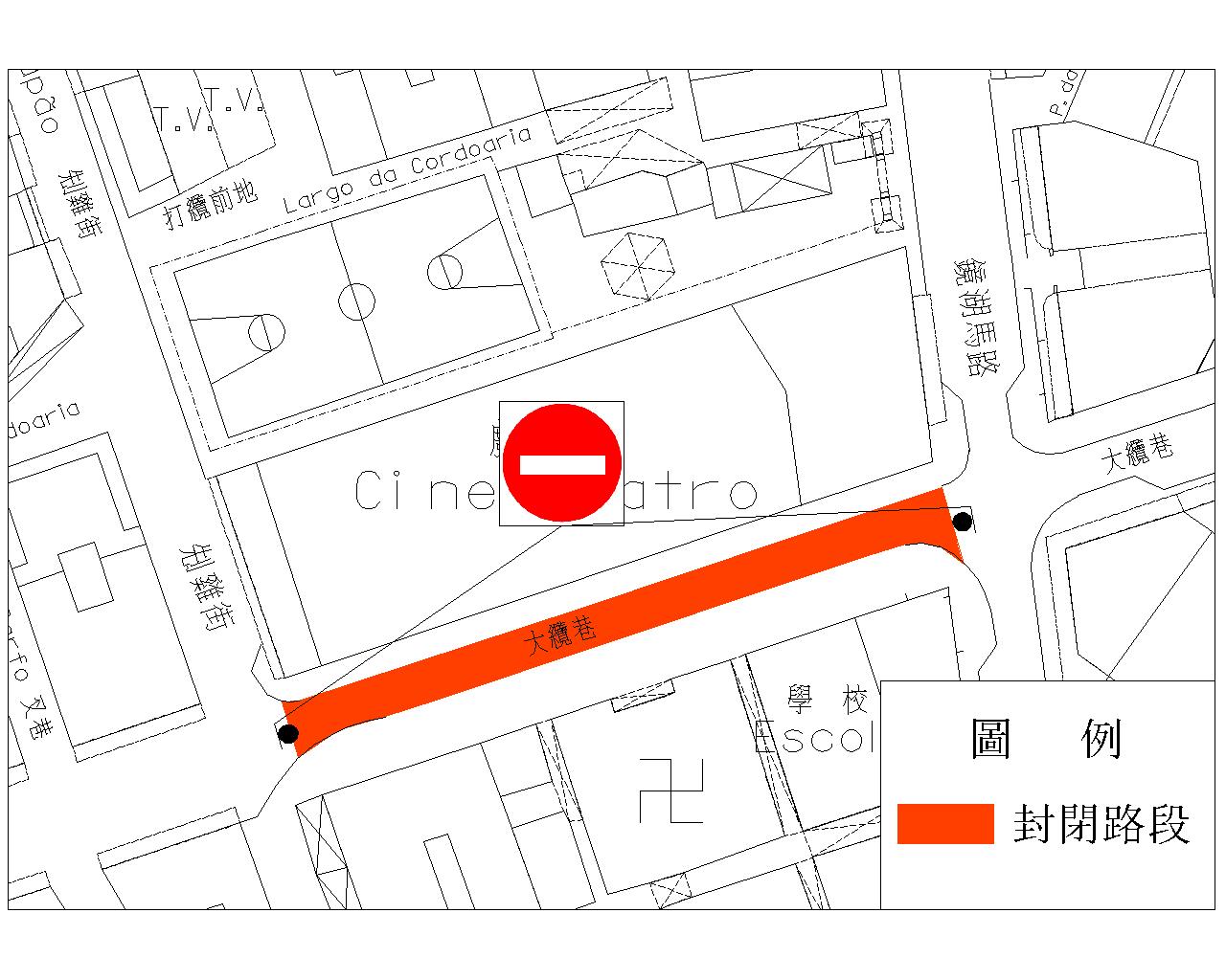 配合新橋區坊眾互助會舉辦恭賀財帛星君誕活動,介乎雞街與鏡湖馬路之間的一段大纜巷,本月17日(周日)上午9時30分至11時30分實施封閉交通,除緊急服務車輛外,禁止其他車輛通行及停泊。交通事務局呼籲駕駛者留意。