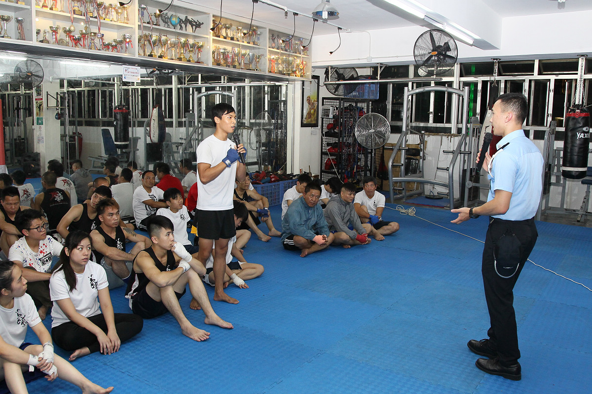 今日傍晚6 時30分,行動廳公關處副警司黃志宏連同警犬隊成員組成一行六人宣傳隊,向暑期興趣班的一眾學員進行『防罪防毒講座』。講座設有警犬在場演示輯毒模擬過程,隨後講述近年青少年常見的犯罪及涉毒情況,以及介紹相關法律條文,並派發“預防青少年犯罪及舉報不法”小冊子,提醒學員『珍惜前程,健康人生』,活動得到學員的認同及歡迎。