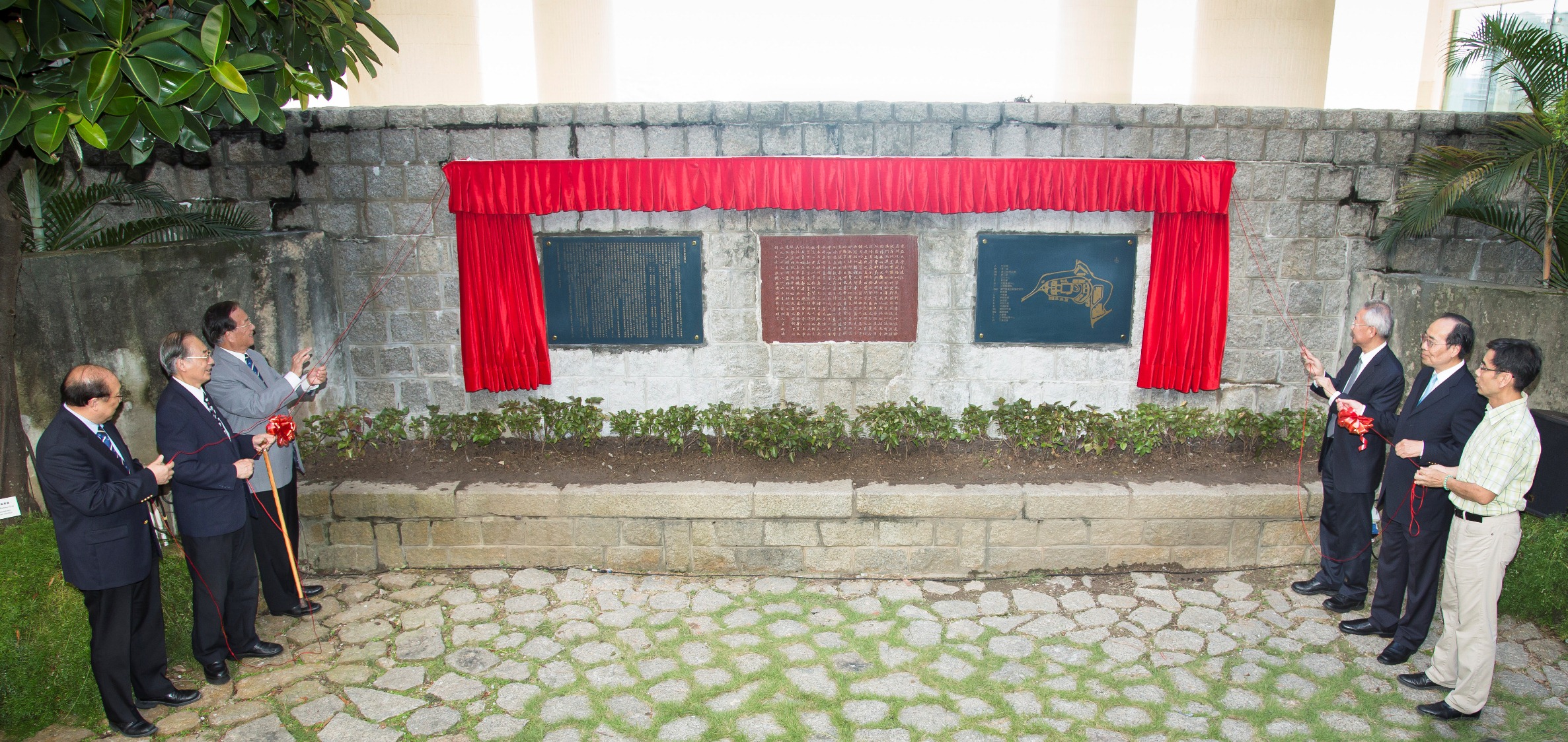 儀式上,林金城、謝志偉、黃景強、周禮杲、姚偉彬和趙偉共同為鑲嵌於舊校園大豐樓花園的紀念澳大校園發展的兩面牌匾──“搬遷史”和“新、舊校園平面圖”揭牌, 新的牌匾“搬遷史”由謝志偉博士撰寫,介紹澳大的發展歷史,當中包括由私立東亞大學改名為澳門大學、重組校董會和修章的歷程、澳大獲得中央撥地興建新校園,以及新校園對澳門高等教育發展所起到重要作用等;而使用澳大藍色、金色勾勒的“新、舊校園平面圖”就呈現了新、舊校園平面圖的對比。另外,儀式上還安排遷龜環節,主禮嘉賓從學生手中接過在舊校園龜池內飼養多年的巴西龜,放到箱內交給飼養員帶到新校園,象徵著澳大遷校工作完成,全校上下一心同歸,共創更多輝煌的美好願望。
