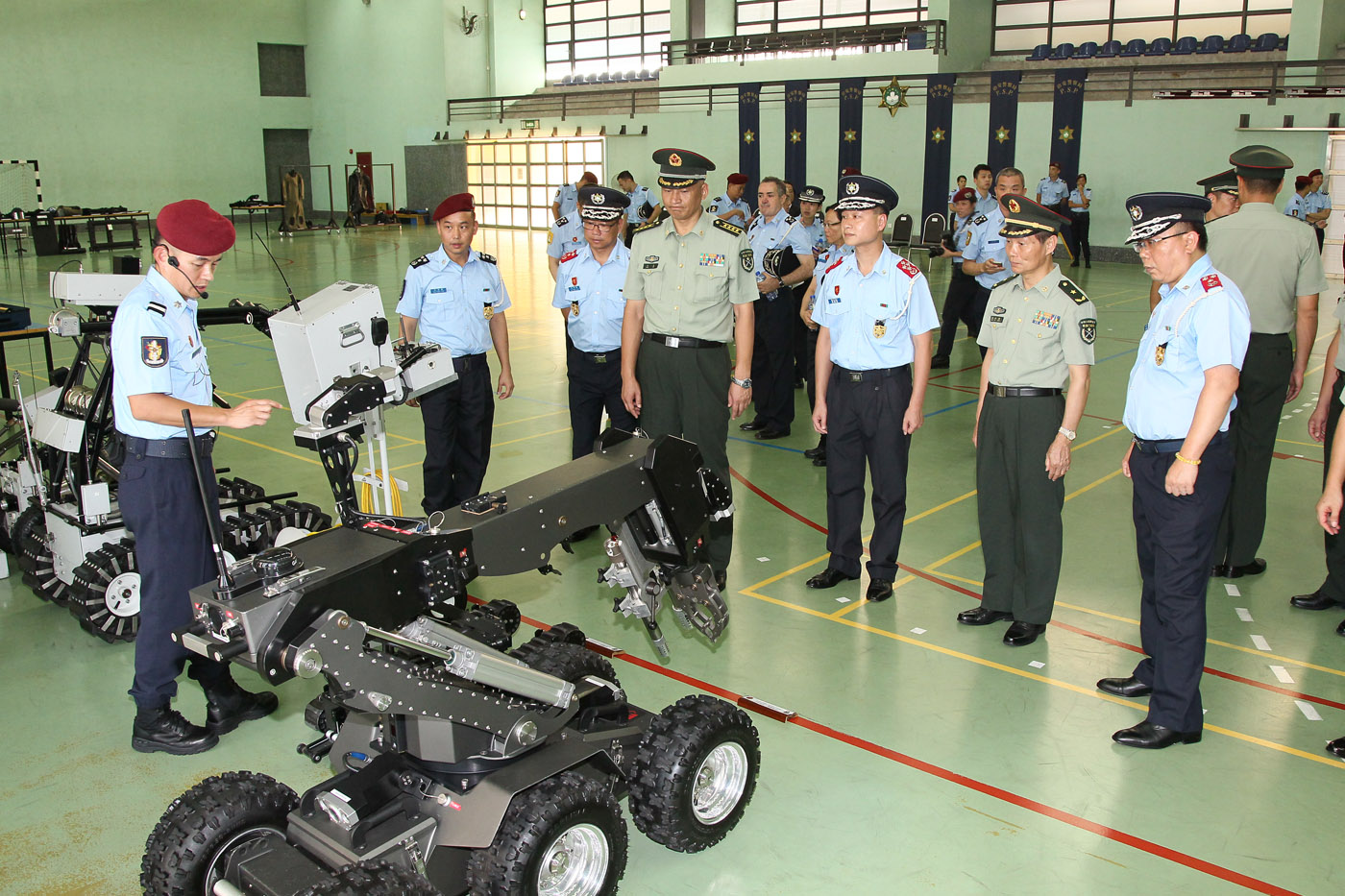 中國人民解放軍駐澳門部隊司令員王文大校及政治委員馬必強少將今日率團訪問治安警察局,下午抵達特警隊總部,出席儀仗隊歡迎儀式後,與治安警察局局長馬耀權等領導會面,聽取該局的簡介及參觀特警隊的特種車輛、防暴及排爆等裝備。