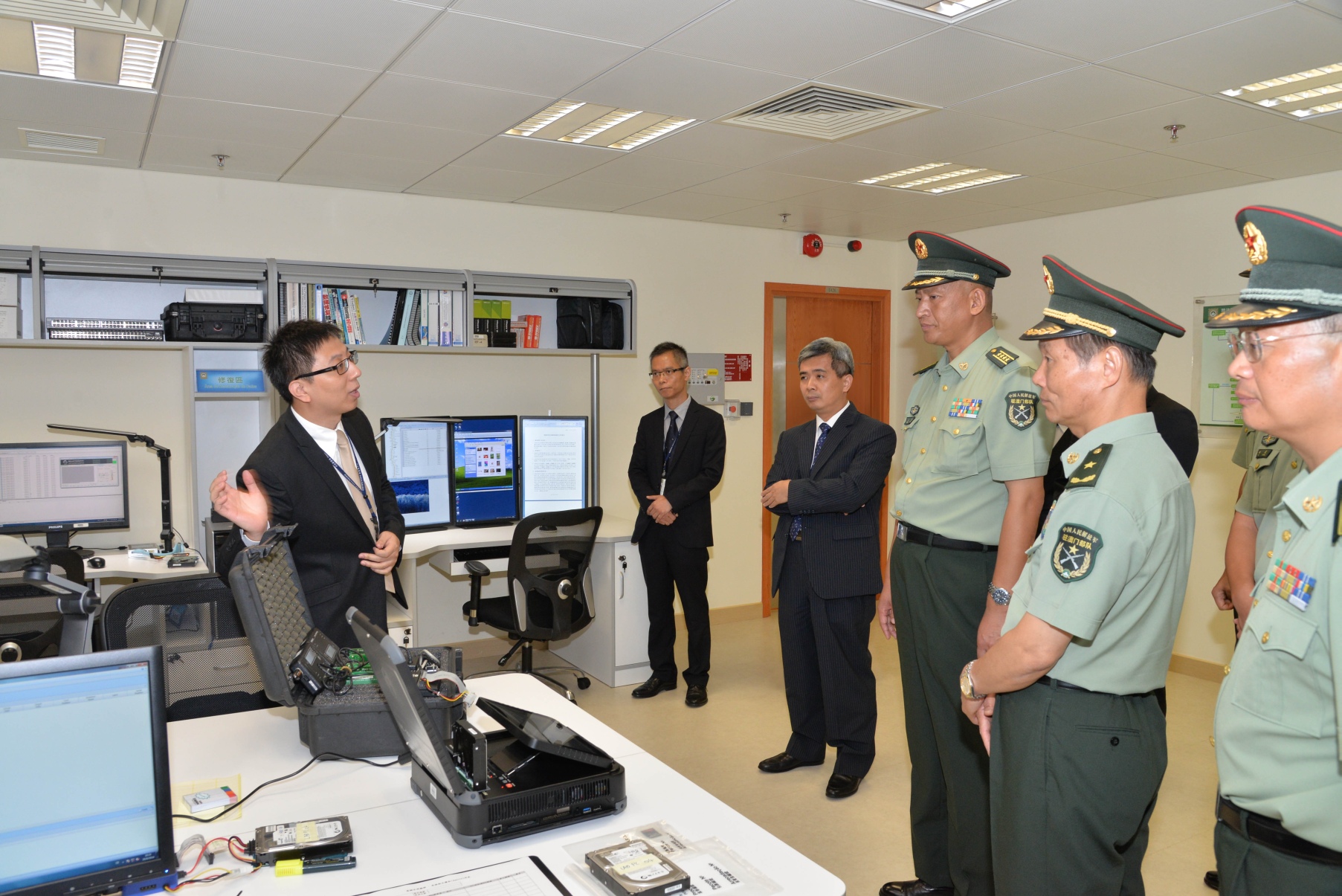 隨後,駐澳部隊代表團轉赴司法警察局,與司法警察局局長黃少澤等領導會面,就本澳治安形勢及刑事偵查等方面進行討論交流,並參觀設於電腦法證處內的證物數據中心及法證檢驗室之工作情況。