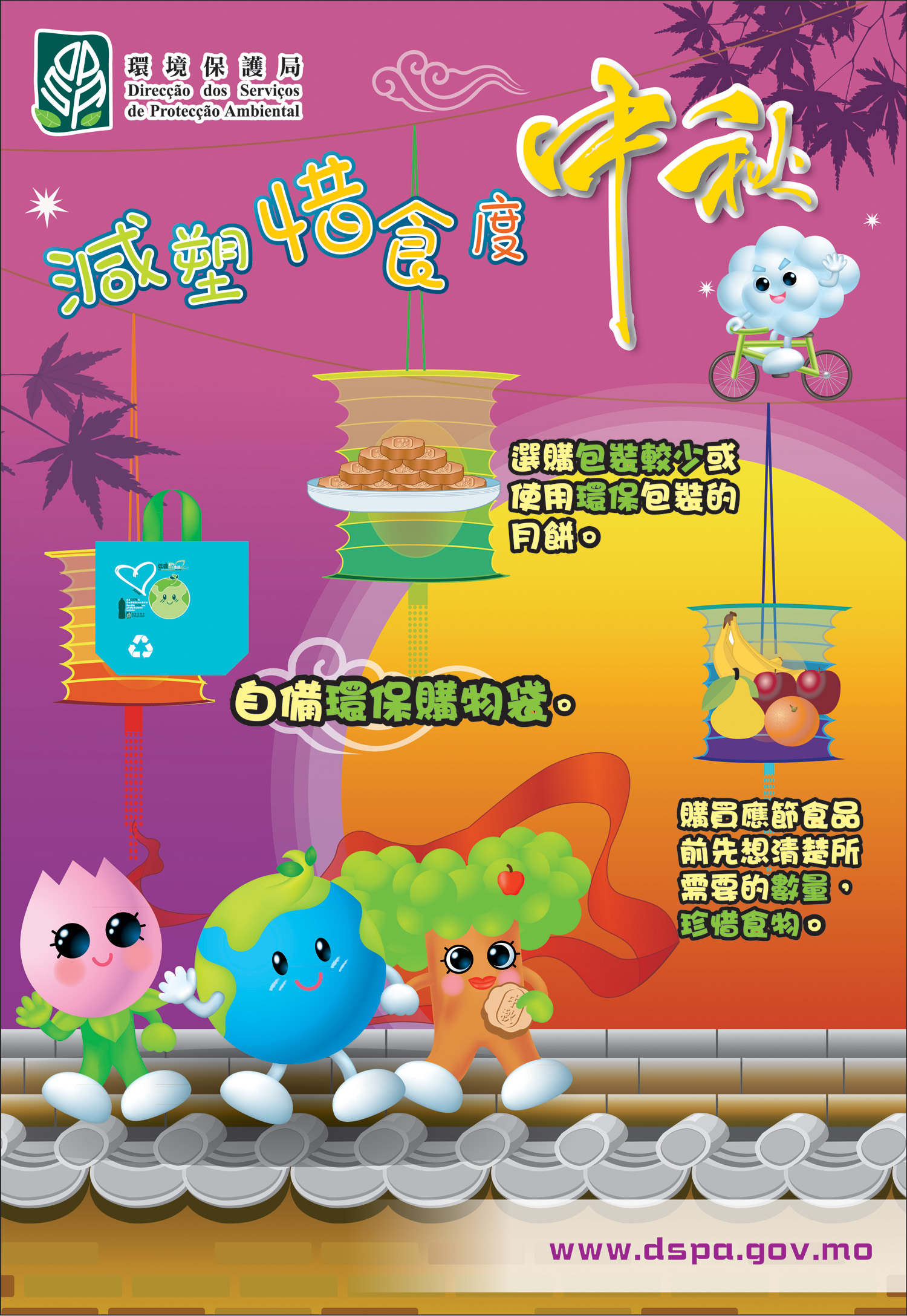 中秋節是一家人團圓的傳統節日,按照習俗除吃月餅,賞明月以及玩燈籠外,我們應同時出一分力保護明月高掛的清空和提供豐富資源的地球。環境保護局在此呼籲各位市民在佳節歡聚時,不忘支持“減塑”以及“惜食”的環保行動。
