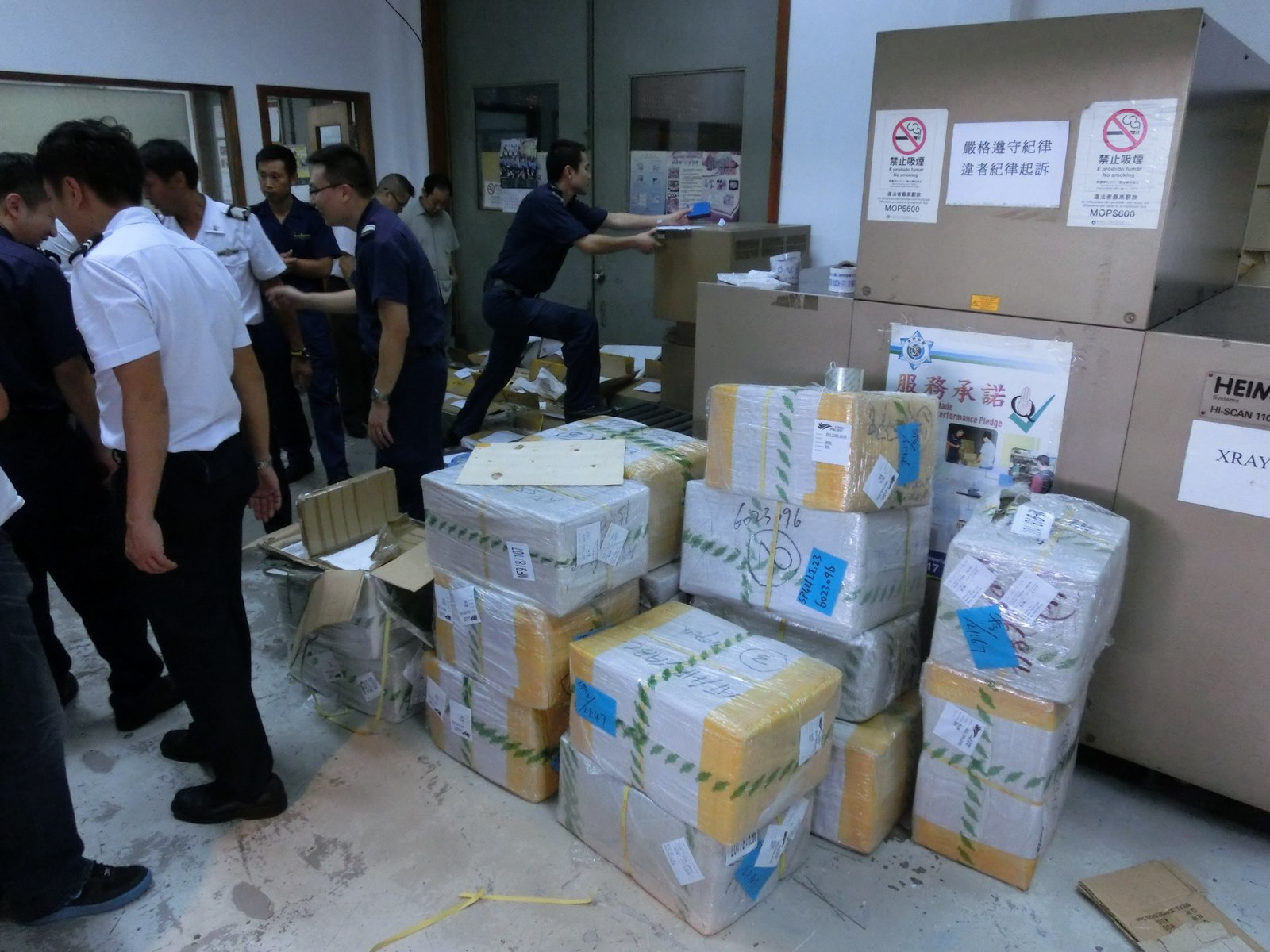於八月二十六日,澳門海關口岸監察廳國際機場海關站稽查人員,在機場貨運站檢查一批由內地經路氹新城海關站進入本澳再轉運往外國的轉口貨物時,海關站人員發現除了轉運申報單上所報稱的貨物之外,還有三十四箱貨物沒有申報,而負責運送該批貨物的物流公司人員在報關時報稱該批貨物為五金製品、塑料製品、電腦配件、燈具配件及服裝輔料。經海關站人員詳細檢查後,發現該三十四箱没有申報之貨物實為大量著名品牌手錶,明顯與申報單內容不符。口岸監察廳遂聯同知識產權廳作進一步聯合偵查,發現該批手錶涉及多個品牌,總數高達五千多隻,其中十七個品牌已在澳門經濟局註冊,經品牌鑑定人進行核查後,初步證實為假冒名牌手錶。該批貨物若以市場價值計算,總額超過二千萬澳門元。